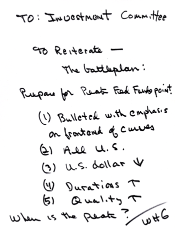 How best to prepare for this expected transition to lower yields? Well, despite skeptics who are suspicious of ulterior motives, we at PIMCO keep very few secrets. I like to think of us as the Ohio State Buckeyes of yesteryear, boasting a well advertised “three yards and a cloud of dust” and daring the opposition to stop us. So, printed below is a duplicate copy of a firm-wide memo just several weeks old.