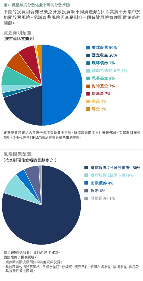 傳統的配置策略透過結合關聯度較低(即是通常不會同時出現相同走勢)的資產類別,以減低整體投資組合的波幅。然而,資產類別的關聯度其實並非有如諸多投資者想像般穩定,而全球化等長期趨勢亦會導致關聯度增加。此外,在市況動盪期間,關聯度亦會普遍增加,令一些看似性質不同的資產類別可能出現相近的表現。換言之,儘管投資組合已分散投資於不同資產類別,但其分散風險程度仍可能不足以抵禦市場波幅(圖一)。