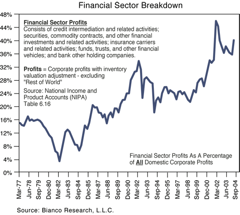 The consequences of higher interest rates mentioned above can be destabilizing as well. It’s sobering to contemplate that not only has our current cyclical prosperity been due to the “productivity” of lower interest rates in a finance-based, debt-laden economy, but that the reversal of yields must be more than delicately manipulated in order to prevent reciprocal damage and global economic instability. I use the term global in this context more than figuratively. The reality is that almost all the world’s significant central banks save the ECB have begun or are in the process of monetary policy reversal and many do so within an environment fraught with substantial debt and therefore risk. England’s Monetary Policy Committee is already on the march upward in an effect to cool speculative housing appreciation. With home prices ultra-sensitive to short-term rates, however, they could go too high or stay too low, with their domestic economy swaying in the balance. Japan is contemplating an exit from their ZRP or Zero Interest Rate Policy. Talk about a foggy horizon! With so much government debt held by so many domestics banks and insurance companies, their central bank could technically bankrupt their own financial sector by too precipitous a move which would sink JGB prices and asset valuations at these institutions. Japan’s new friendly neighbor to the west – China – has a pickle with their own short-term rates and eventual revaluation of the RMB vs. the dollar. China’s banks themselves have an excess of low quality loans supported by a thin thread of mercurial equity. And then there’s the Fed. Wednesday’s interest rate hike is just the beginning of a journey as to who knows where or when. Not only our housing market, but the financed-based profits (40% of all profits as shown below) of American corporations are at risk. This in turn speaks to the stock market, P/E ratios, and wealth/paper-based prosperity, that depend on the continued low cost of excessive debt taken on in recent years.