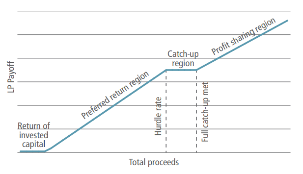 After the investor receives their return of called capital and the preferred return, the manager (GP) then “catches up” to receive a portion of the profits splitting subsequent profits in accordance with the pre-specified carried interest structure.