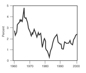 Such miraculous transformations, however, come with no guarantees for future performance. The tide comes in and the tide goes out as they say. Still in this business, having a set of tables to gauge the ebb and flow of the global economy and its investment markets can be an immeasurable guide in avoiding long-term, as opposed to six-month performance disasters. PIMCO’s tables have always had a secular theme to them, and that secular theme in recent years has been dominated by the question of productivity and its resurgence in a “New Age” economy. “Is it different this time or not?” is the essence of this biggest of all investment questions, and while our recent Secular Forum in May of 2001 recognized U.S. productivity as the global economy’s “weakest link,” that phrase still begged the question of how weak of a link, or conversely – how strong this New Age tide. Some of your eyes may already be glazed over at the seemingly incessant reintroduction of this somewhat boring economic conceptual conundrum. Who really gives a hoot you might submit and I couldn’t blame you if you did. Still, as I suggested a few sentences back, it is the big Kahuna of investment questions. Picture a craggy old Jack Palance in City Slickers holding up his index finger to a befuddled Billy Crystal. “Just one thing,” he says, “you must know just one big thing.” The future level of productivity in our New Age Economy is the investment world’s “one big thing.”