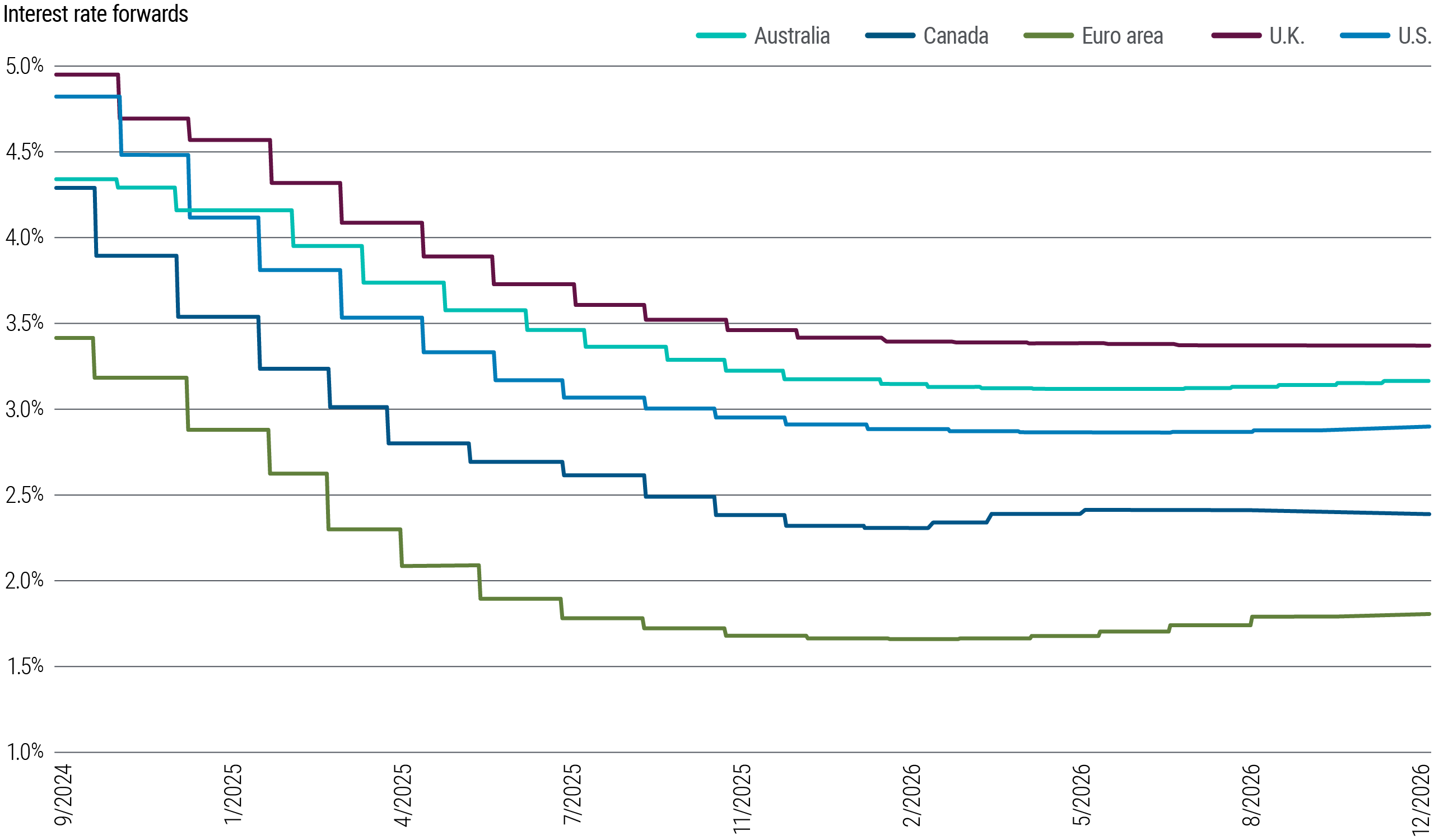 However, given longer-term trends in demographics and wealth disparity, and the uncertain pace and magnitude of investment cycles, we’ve maintained our 0%–1% estimate for the long-run neutral real rate, as we detailed in our latest Secular Outlook, “Yield Advantage.” That suggests a neutral nominal policy rate in the range of 2%–3%. When we published that Secular Outlook in June, we noted how market pricing at the time implied that the neutral policy rate was unlikely to fall below 4%. Since then, market pricing has moved more in line with our expectations.