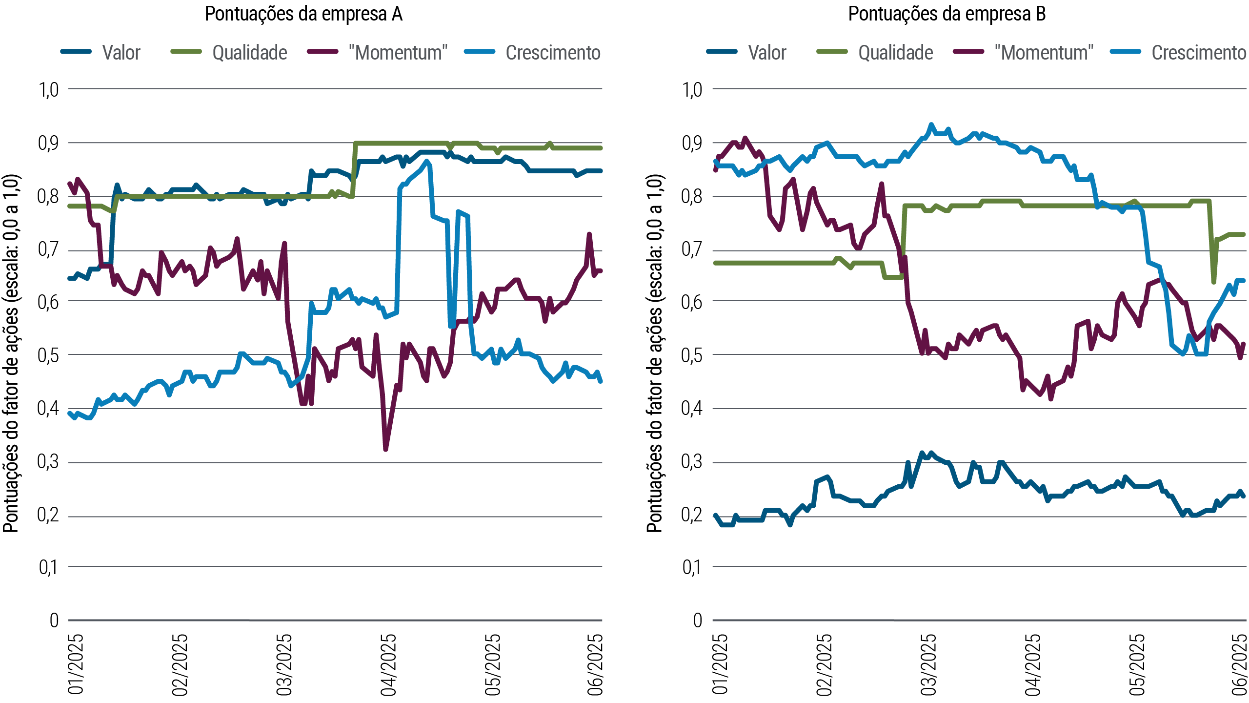 - Combinamos pontuações de fatores individuais em uma pontuação consolidada para cada ação, o que permite maior transparência.
