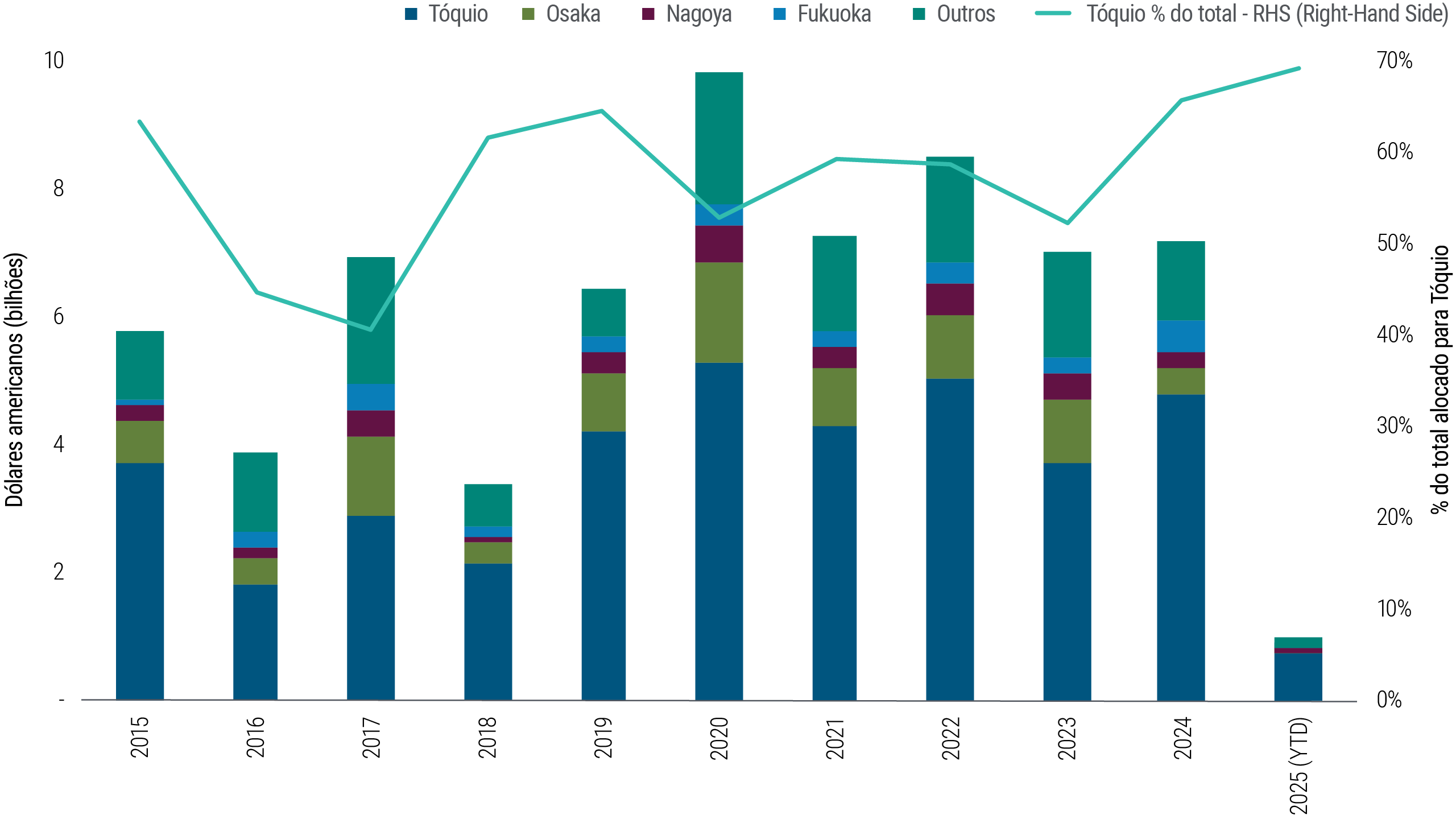 O Japão se destaca por sua combinação de migração urbana, moradia acessível para aluguel e profundidade institucional, oferecendo um mercado estável e líquido para investimentos residenciais de longo prazo (veja a Figura 2).