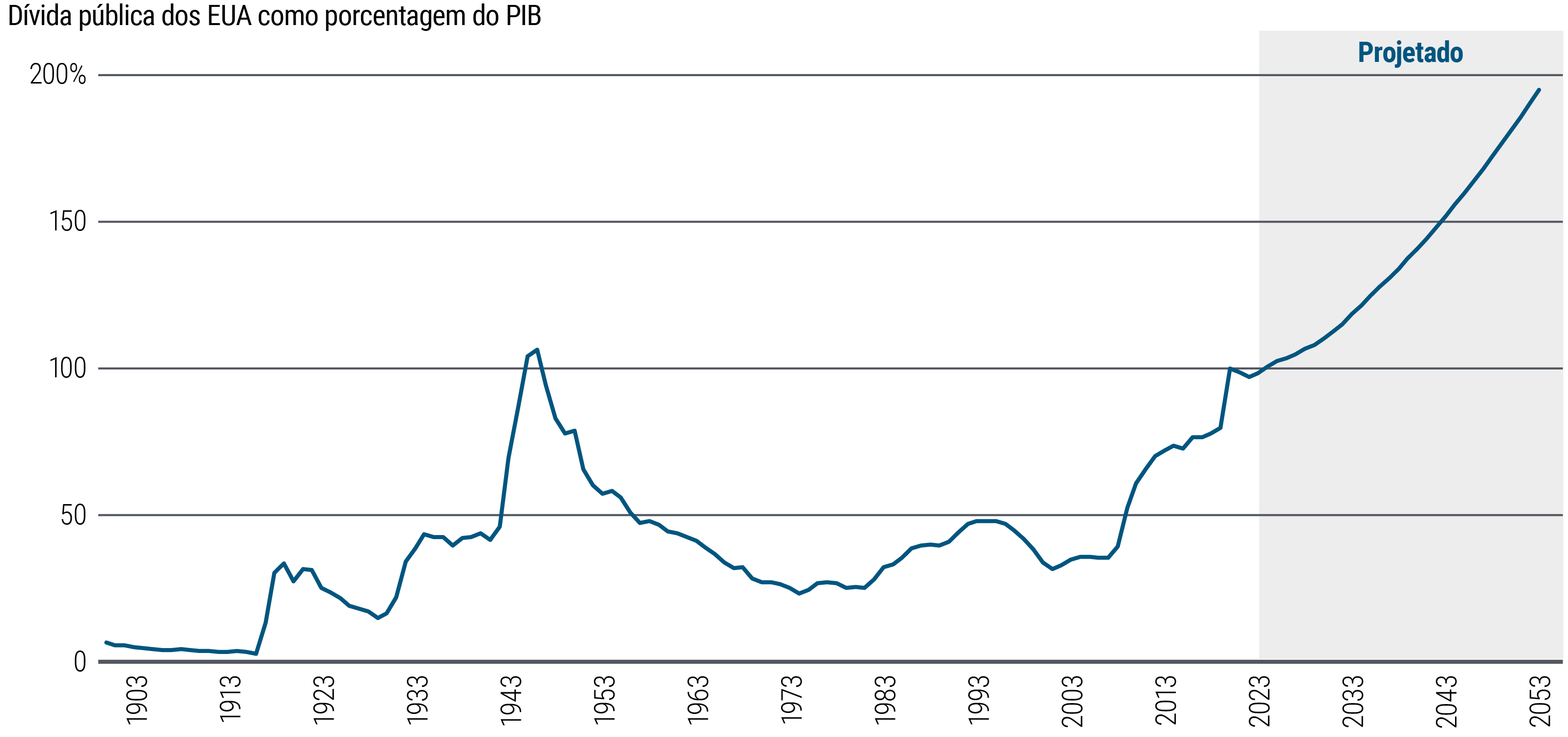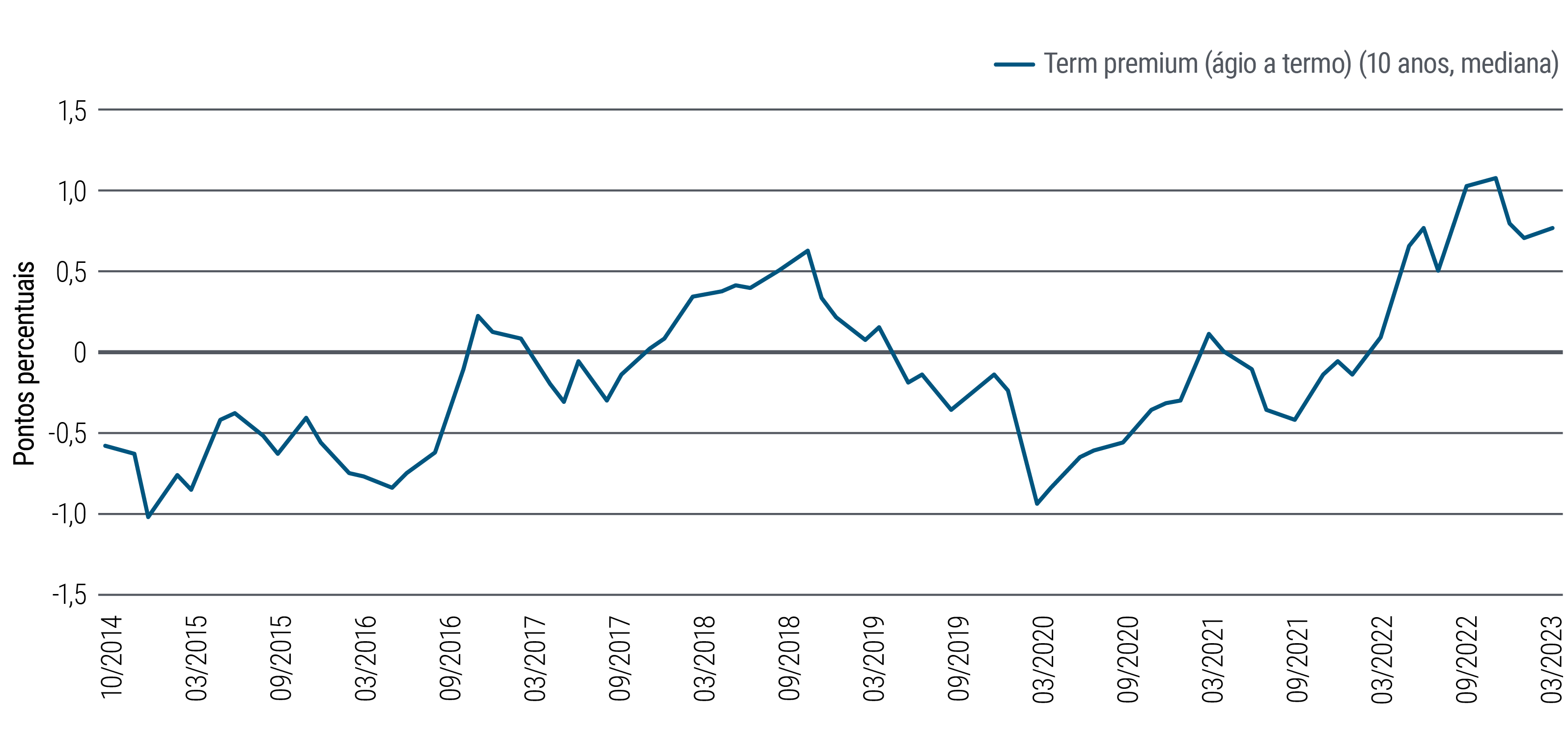 No ano passado, a crise do investimento direcionado por passivos (liability-driven investment, LDI) no Reino Unido foi um lembrete de que as preocupações com a estabilidade fiscal podem afetar os principais países dos mercados desenvolvidos com suas próprias moedas, bem como a zona do euro e os mercados emergentes. Os preços de mercado não sugerem altos níveis de preocupação com a estabilidade fiscal no longo prazo, mas o Reino Unido pode ser um sinal de alerta em relação a essa questão.