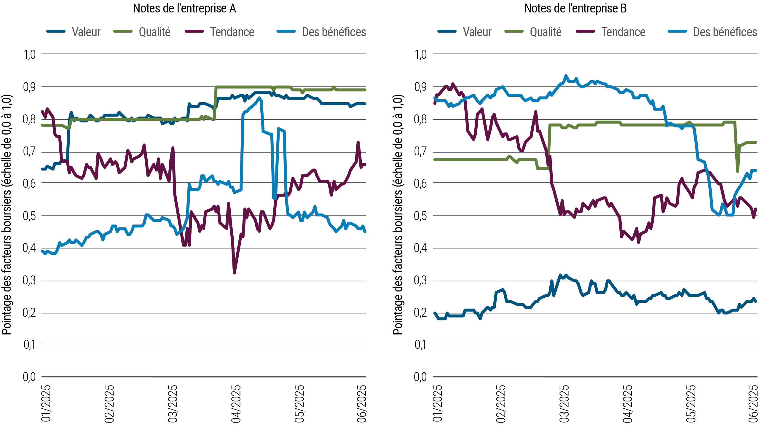 - Nous combinons les pointages des facteurs individuels en un pointage consolidé pour chaque action, ce qui permet une plus grande transparence.