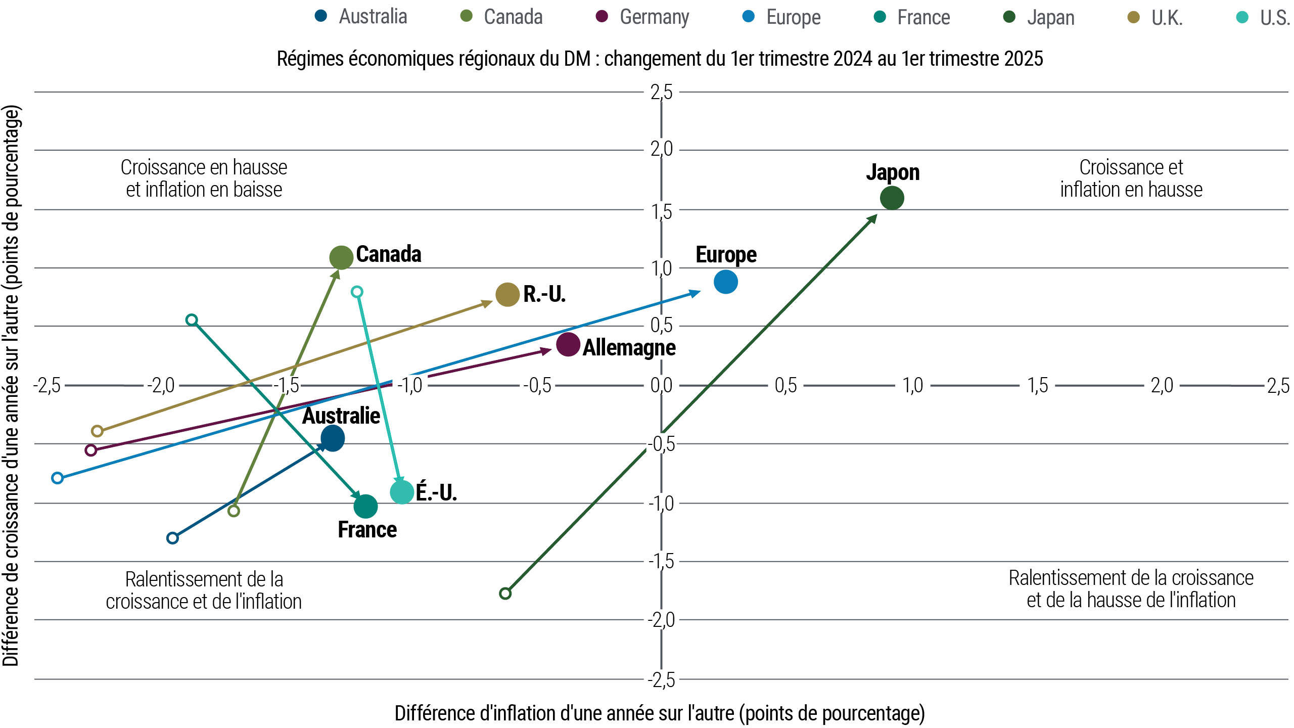 Sur les marchés mondiaux, les différentes régions affichent un large éventail de tendances en matière de risque et de rendement. Cet environnement peut accroître les avantages de la diversification au sein des catégories d'actifs, de sorte que les investisseurs peuvent bénéficier de positions mondiales en actions et en titres à revenu fixe.
