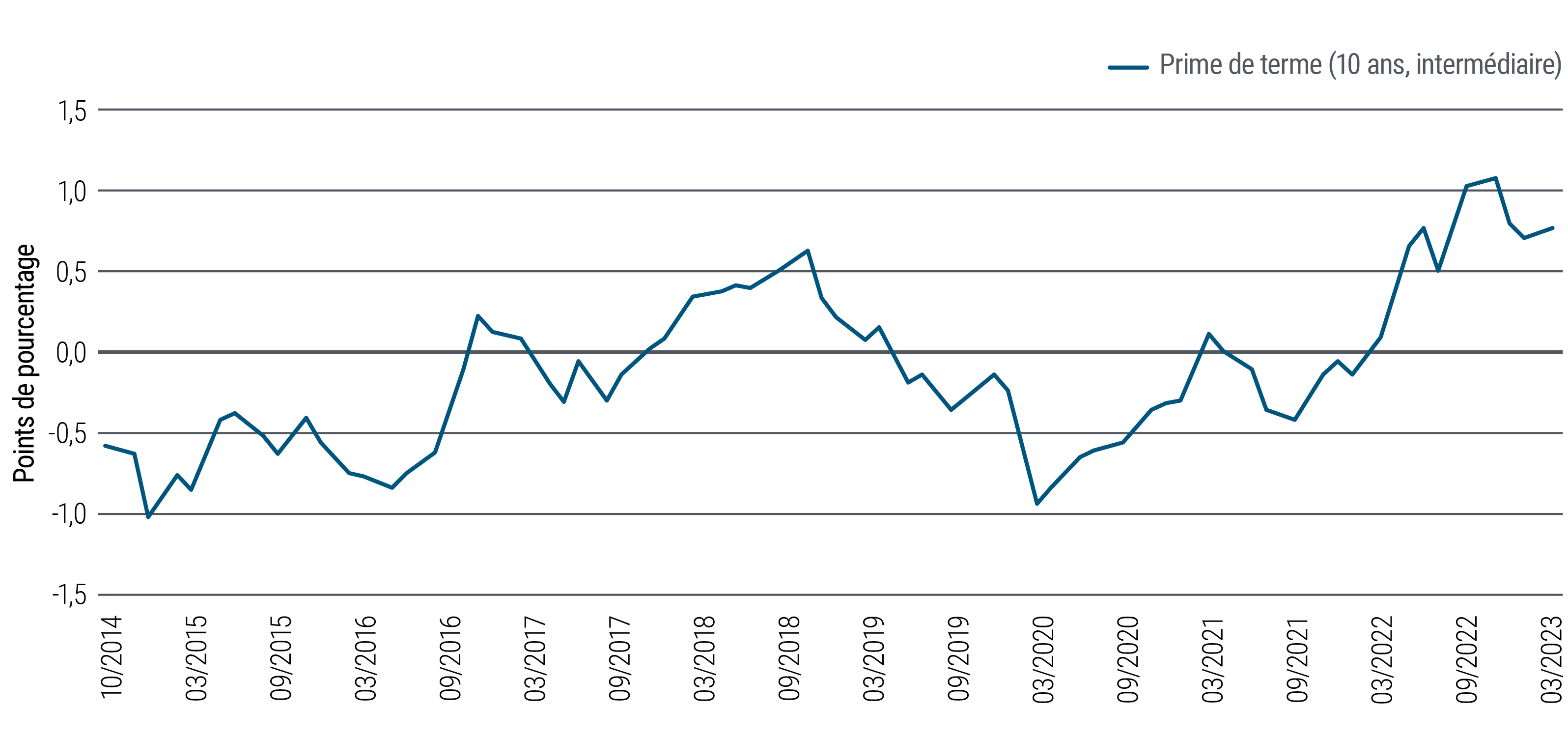 Toutefois, les incertitudes qui accablent le secteur bancaire exigeront un suivi rigoureux pour déterminer les placements qui tireront leur épingle du jeu. Nous tenons à rehausser la qualité parmi les financières, en termes d’émetteurs et de rangs dans les capitaux. Le système financier de la zone euro a relativement bien résisté aux répercussions de la crise des établissements régionaux américains et au contrecoup de l’effondrement de Credit Suisse, mais paraît relativement vulnérable à une crise bancaire généralisée en raison des lacunes existantes dans le secteur des assurances (résolutions et dépôts).