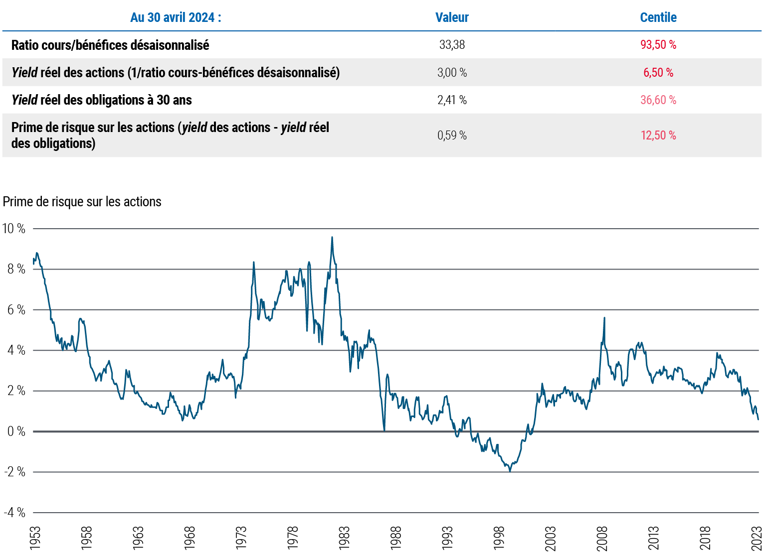 Ainsi, un volet obligataire diversifié offre un potentiel de rendement à long terme comparable à celui des actions, moyennant un profil ajusté au risque plus favorable, en particulier dans ce contexte où les marchés boursiers paraissent surévalués (voir figure 3). Les investisseurs ne semblent pas anticiper de risque significatif de récession, de sorte que les obligations constituent un moyen peu onéreux de se couvrir contre celui-ci.