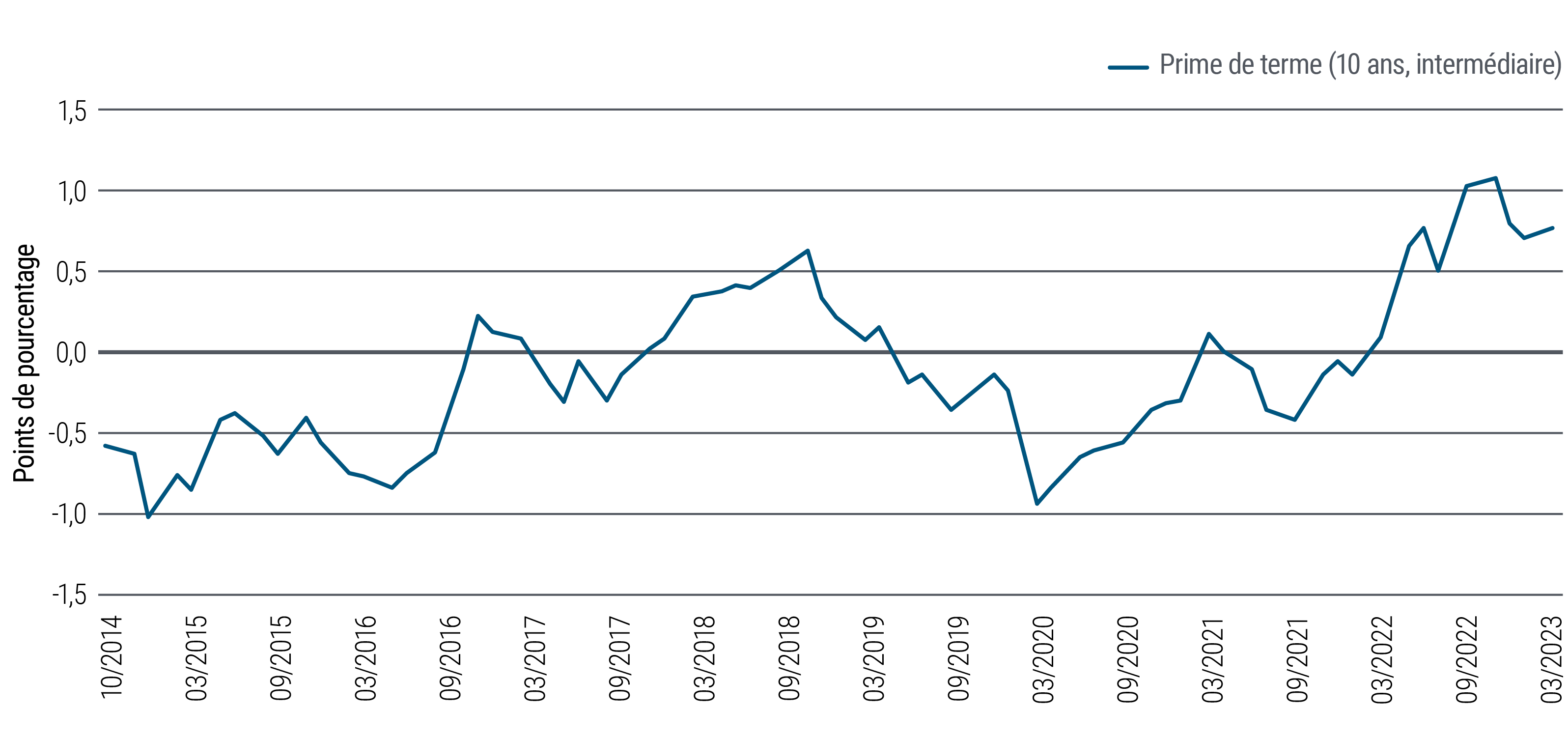 Toutefois, les incertitudes qui accablent le secteur bancaire exigeront un suivi rigoureux pour déterminer les placements qui tireront leur épingle du jeu. Nous tenons à rehausser la qualité parmi les financières, en termes d’émetteurs et de rangs dans les capitaux. Le système financier de la zone euro a relativement bien résisté aux répercussions de la crise des établissements régionaux américains et au contrecoup de l’effondrement de Credit Suisse, mais paraît relativement vulnérable à une crise bancaire généralisée en raison des lacunes existantes dans le secteur des assurances (résolutions et dépôts).