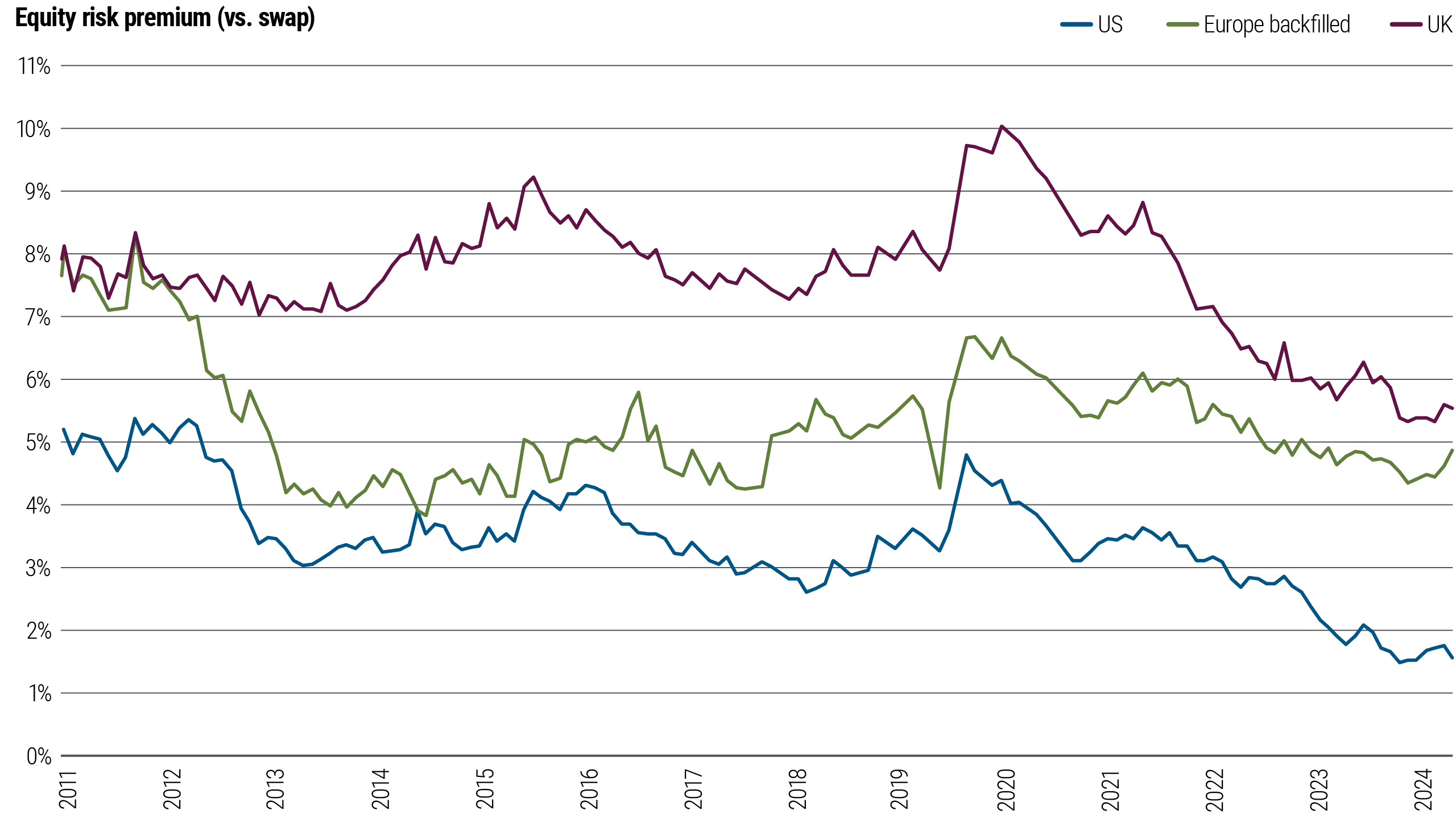 Les mesures de relance budgétaire ont contribué à alimenter une reprise économique d’après pandémie aux États-Unis, tout en propulsant les marchés boursiers vers des sommets. Même si les actions pourraient continuer de s’apprécier, elles apparaissent onéreuses, avec une prime de risque qui renoue aux États-Unis avec son niveau plancher. Il s’agit d’une mesure du prix qu’accepte de payer un investisseur pour souscrire une action par rapport au taux sans risque (voir la figure 1).