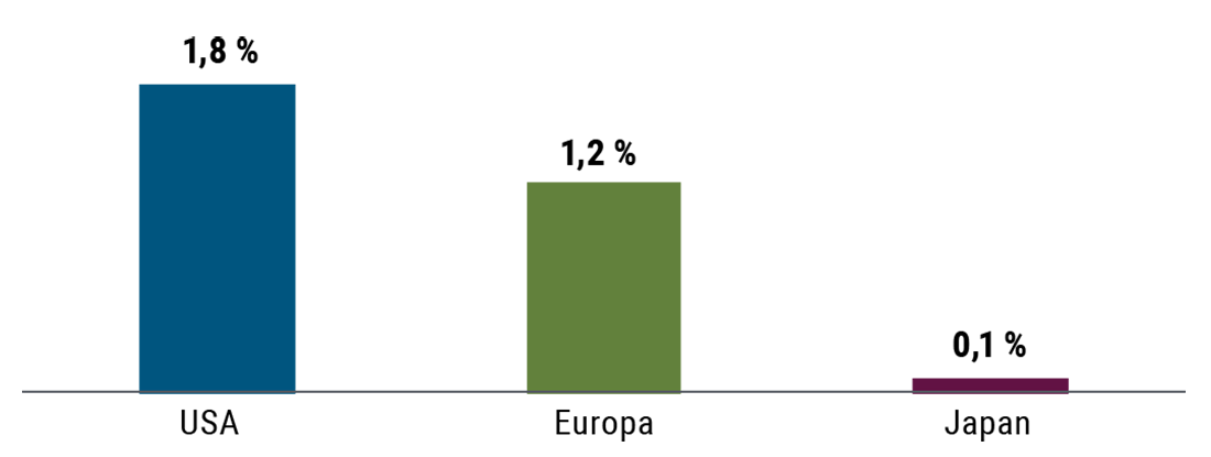 Wir sehen zwei Hauptrisiken, die mit unserer Positionierung einhergehen – ein geringeres Wachstum und eine höhere Inflation –, und sind bemüht, uns gegen diese abzusichern. Unseres Erachtens sollten traditionelle festverzinsliche Anlagen auch künftig eine zuverlässige Diversifikationsquelle bieten, um uns gegen einen Wachstumsschock abzusichern; in Anbetracht der niedrigen Zinsen und des Risikos eines Inflationsschocks ist allerdings eine breitere Diversifikation vonnöten.