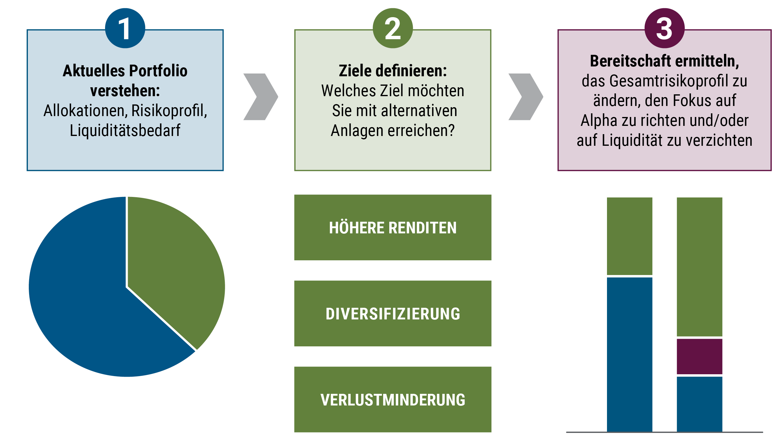 Die folgenden drei Schritte können Anlegern bei der Allokation in alternative Anlagen helfen: