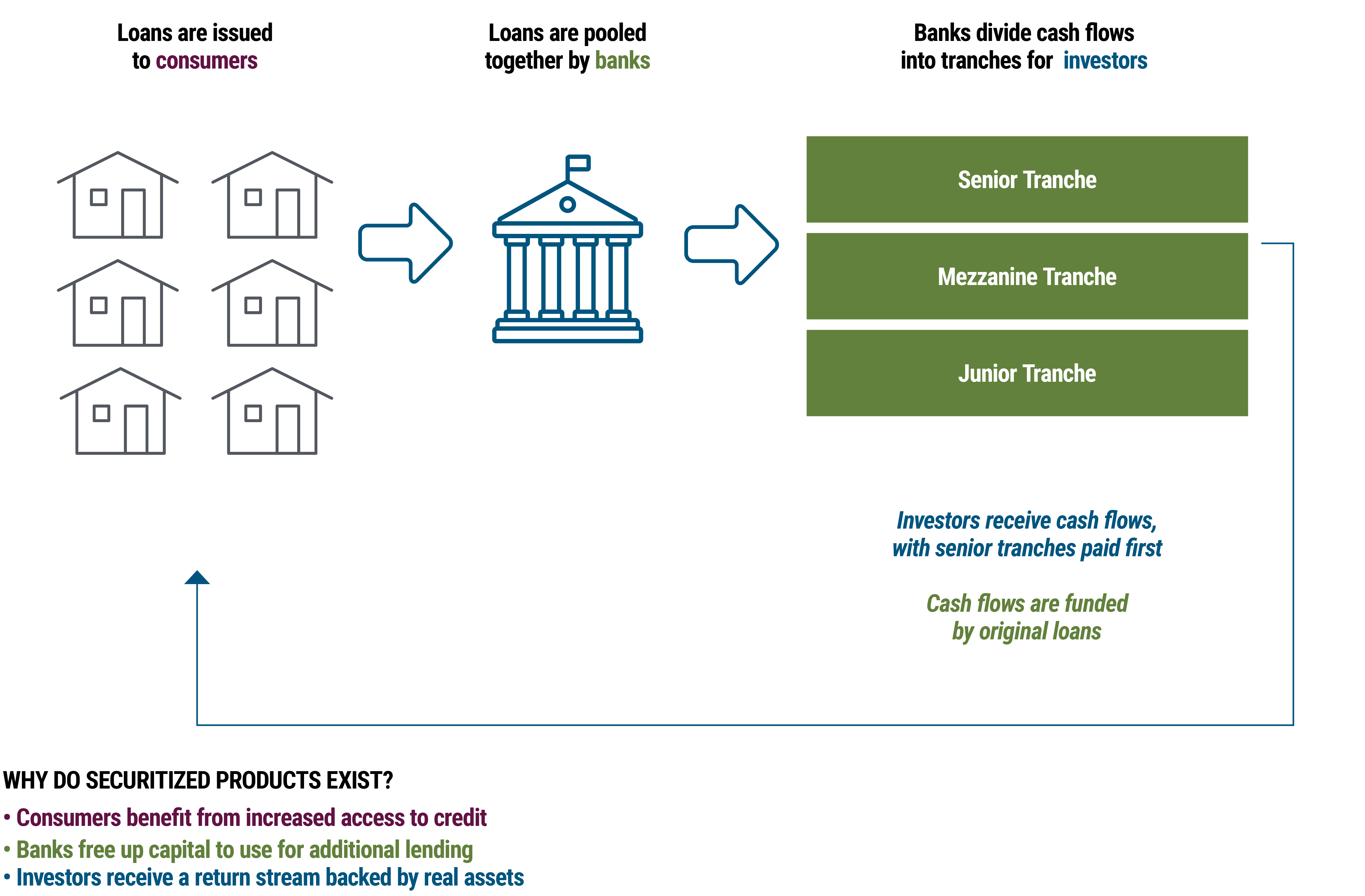 Securitized products are bonds that are backed by pools of individual loans, including mortgages, corporate and sovereign loans, consumer credit, and project finance. These bonds offer an array of attractive opportunities for investors.