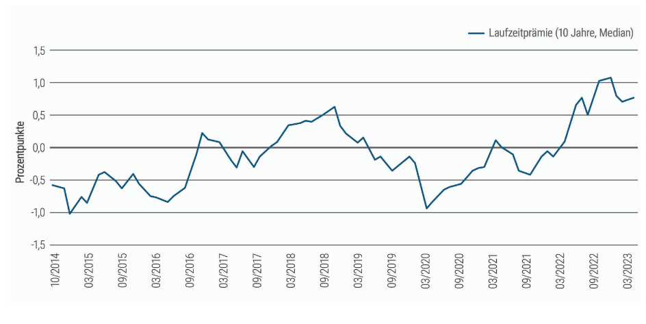 Die britische LDI-Krise (LDI = Liability-Driven Investment) im vergangenen Jahr hat uns vor Augen geführt, dass die Sorgen um die Haushaltsstabilität sowohl in großen Industrieländern mit eigenen Währungen als auch in der Eurozone und den Schwellenländern schwerwiegend sein können. Die Marktpreise lassen aktuell nicht darauf schließen, dass große Bedenken hinsichtlich der langfristigen Finanzstabilität bestehen. Jedoch könnte das Vereinigte Königreich mit Blick auf langfristige Finanzierungsprobleme der berühmte Kanarienvogel im Kohlebergwerk sein (der als Frühwarnsystem fungiert).