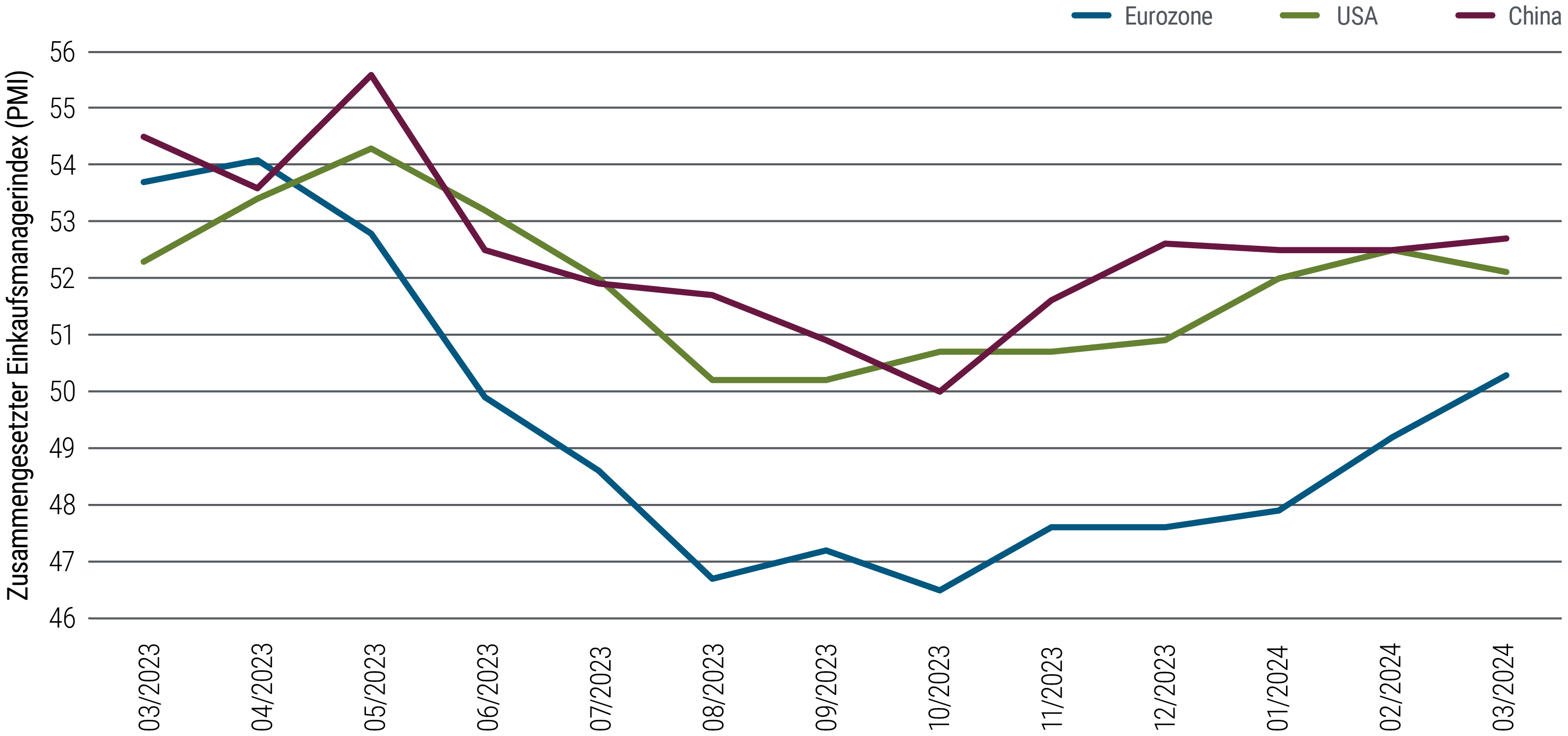 Eine robuste konjunkturelle Entwicklung birgt aber auch Risiken – vor allem, wenn die Notenbanker ihr Augenmerk noch immer darauf richten, die Inflation zurück zu ihrer Zielmarke zu befördern. In den USA verharrt die Inflation seit Beginn des Jahres deutlich über dem Zielwert, womit sie die Markterwartungen übertrifft und die erste Zinssenkung der Fed verzögern dürfte. Dieses Szenario mit längerfristig höheren Zinsen könnte dem konjunkturellen Wachstum letztlich den Schwung nehmen.