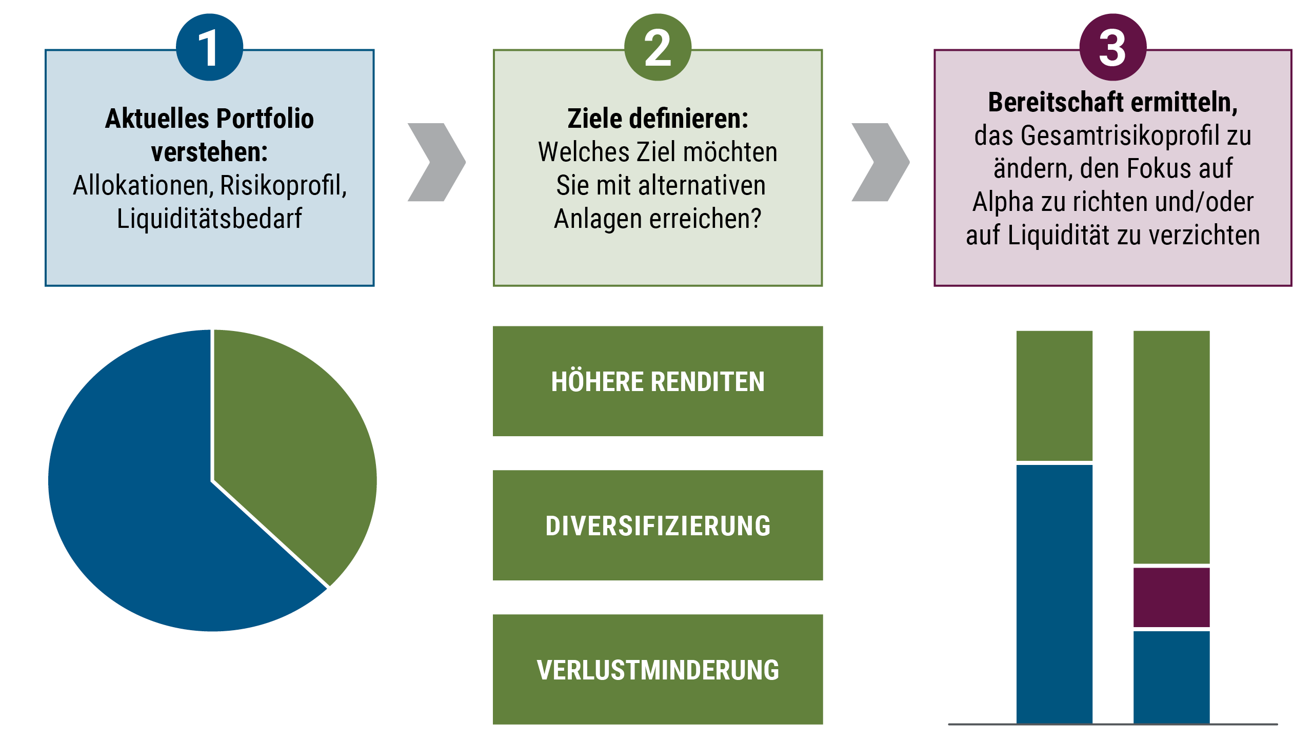 Die folgenden drei Schritte können Anlegern bei der Allokation in alternative Anlagen helfen: