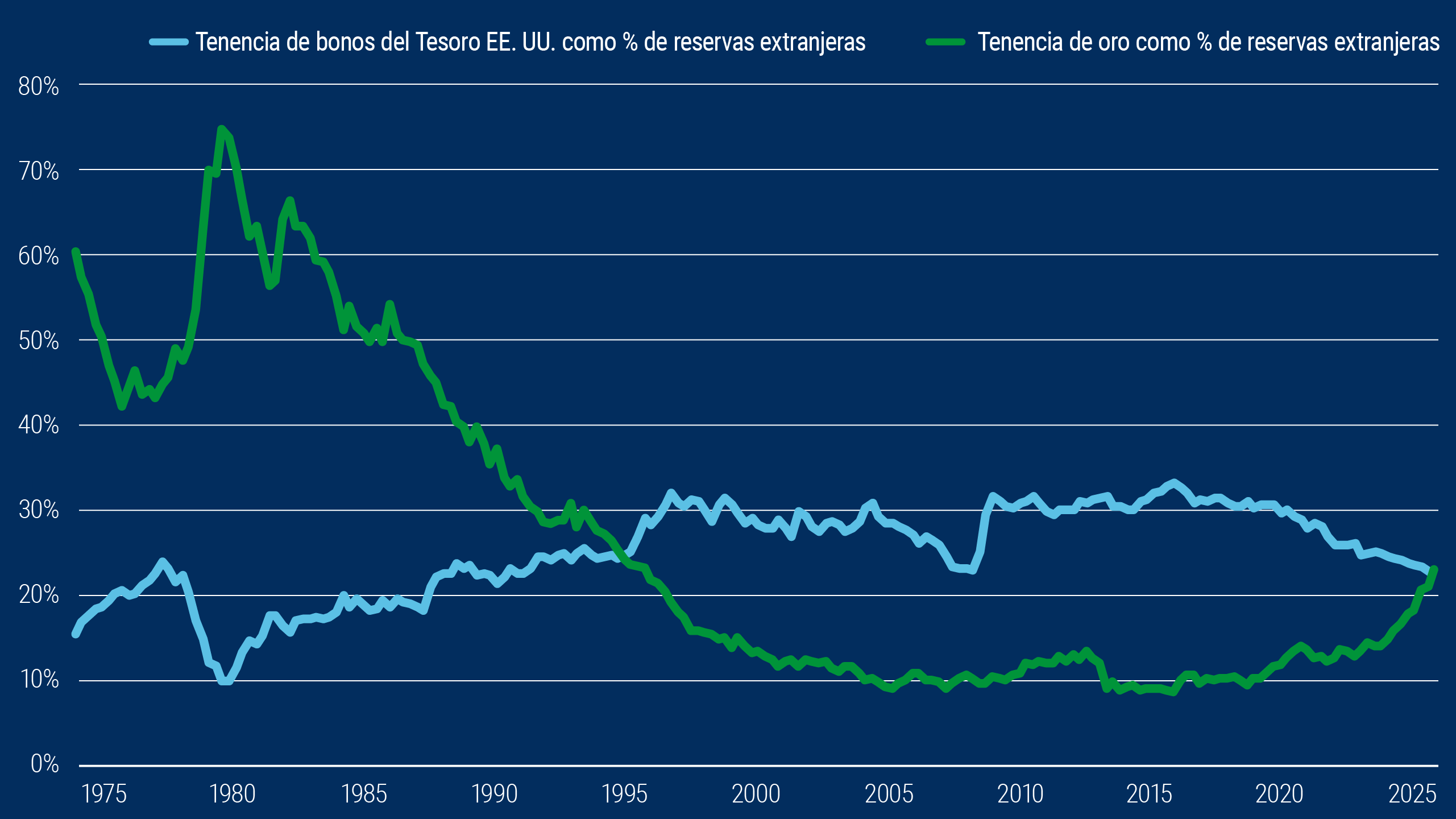 La situación geopolítica sigue influyendo de forma crucial en este comportamiento. La incautación de las reservas rusas en 2022 fue uno de los catalizadores de la acumulación de oro como reserva de valor políticamente neutral. Esta tendencia, junto con las persistentes tensiones comerciales y el creciente endeudamiento soberano, sugieren que la demanda de oro gozará de un respaldo estructural. En nuestra opinión, el oro podría revalorizarse más de un 10% en el próximo año.