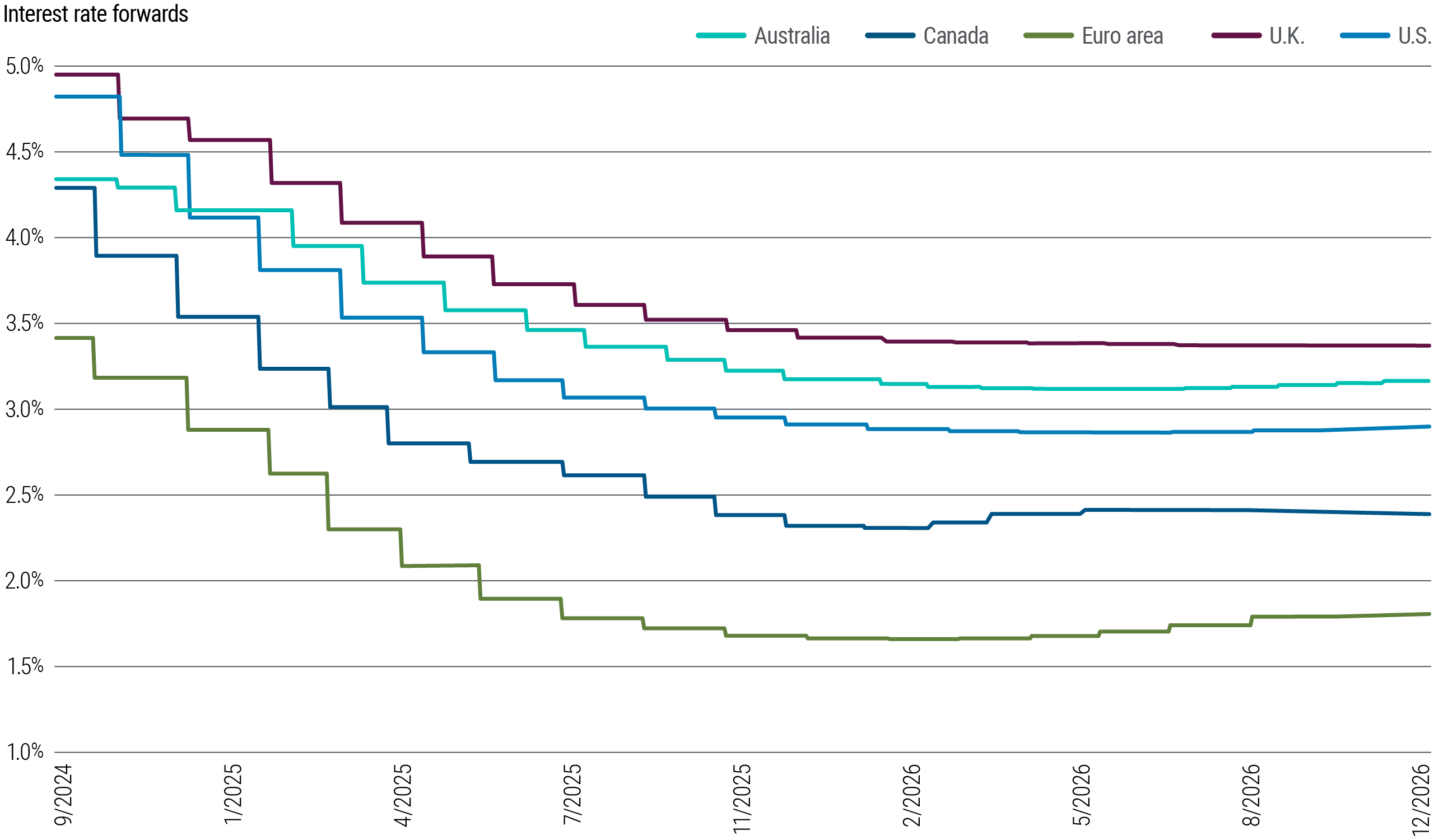 However, given longer-term trends in demographics and wealth disparity, and the uncertain pace and magnitude of investment cycles, we’ve maintained our 0%–1% estimate for the long-run neutral real rate, as we detailed in our latest Secular Outlook, “Yield Advantage.” That suggests a neutral nominal policy rate in the range of 2%–3%. When we published that Secular Outlook in June, we noted how market pricing at the time implied that the neutral policy rate was unlikely to fall below 4%. Since then, market pricing has moved more in line with our expectations.