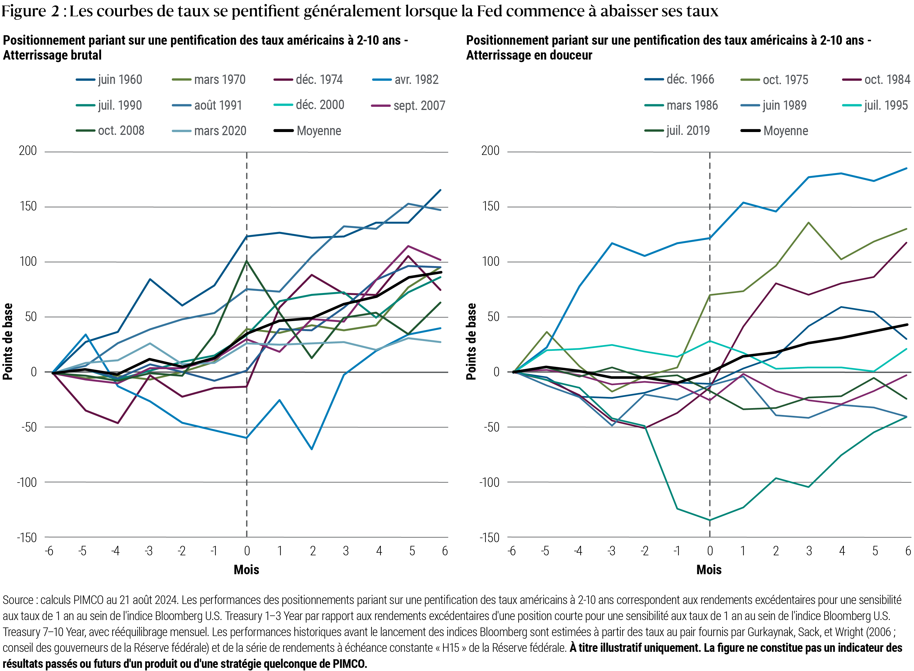 Un positionnement en faveur d'une normalisation de la courbe des taux américaine, qui s'est récemment re-pentifiée après la plus longue période d'inversion jamais enregistrée, pourrait s'avérer gagnant si la Fed abaisse considérablement ses taux à court terme afin de lutter contre la faiblesse conjoncturelle (voir Figure 2).