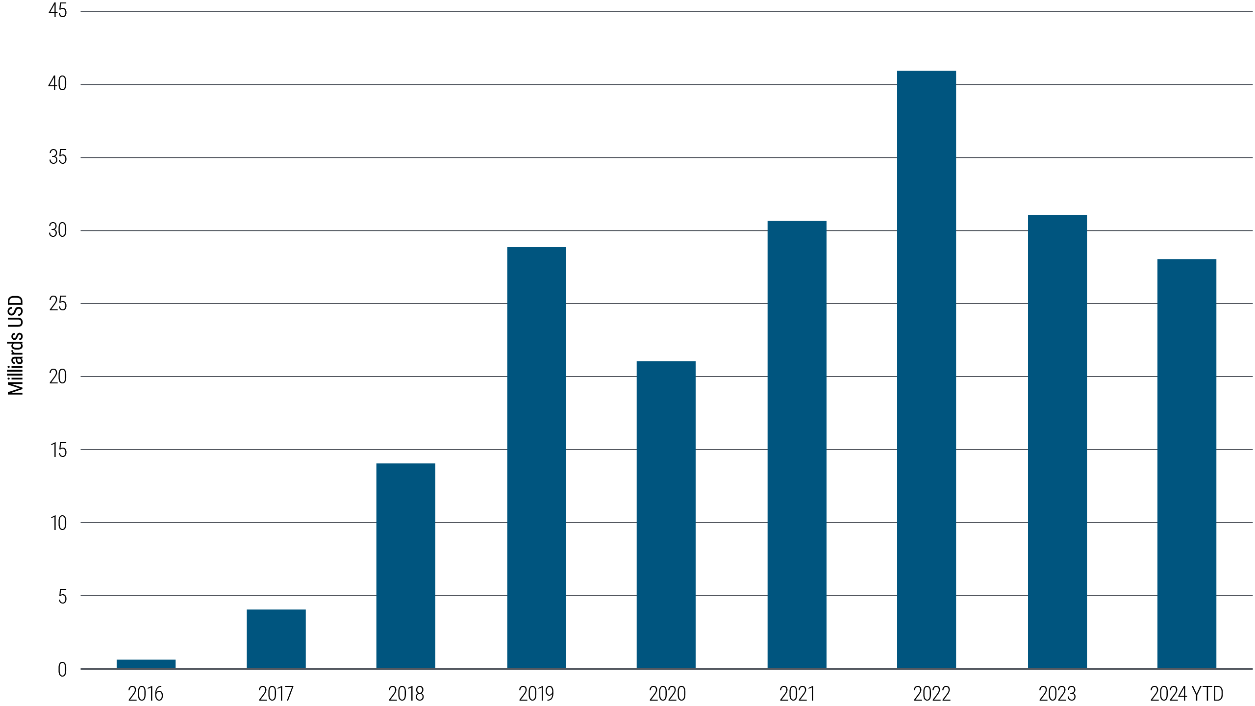 Le financement sur actifs, également appelé financement spécialisé ou prêt adossé à des actifs, est une classe d'actifs attrayante et moins prisée, soutenue par des tendances favorables dans un paysage bancaire changeant. Selon nos estimations, la valorisation du financement sur actifs (hors prêts immobiliers commerciaux) est supérieure à 20 billions USD.