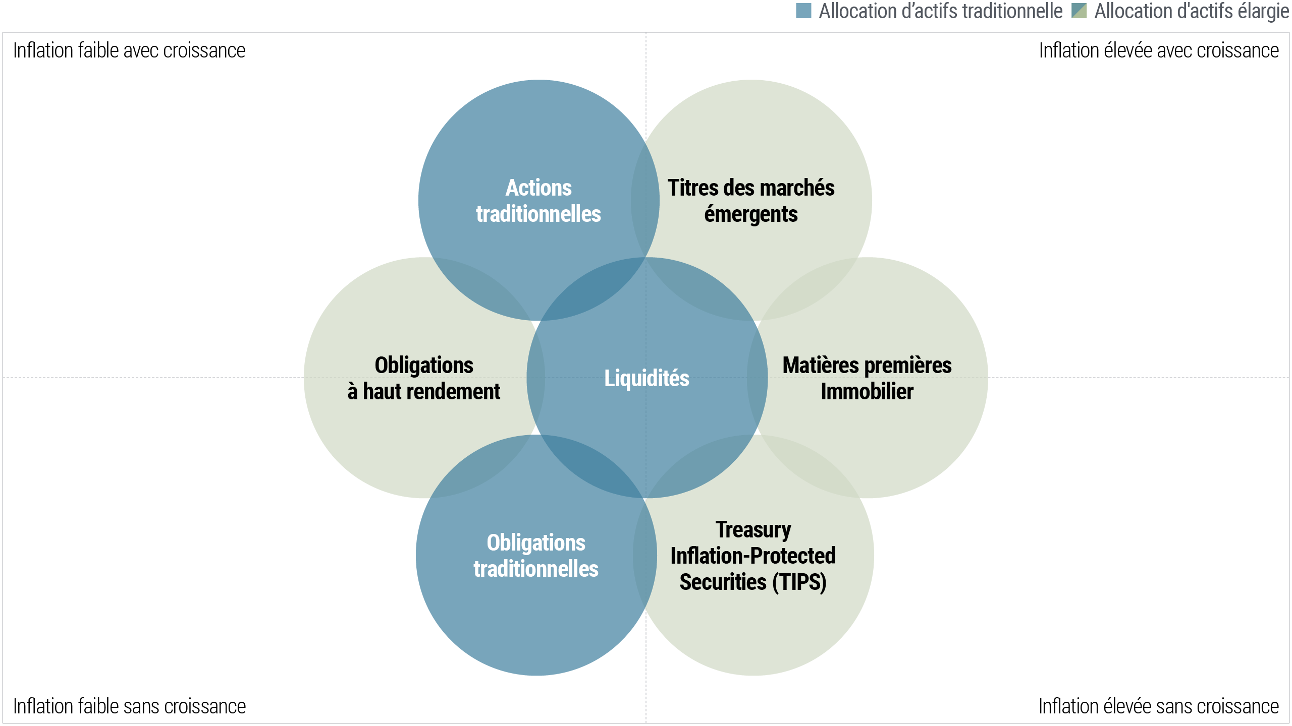 Lorsque l'inflation est élevée par exemple, des actifs tels que l'immobilier et les matières premières peuvent signer de meilleures performances (voir le graphique ci-dessous).