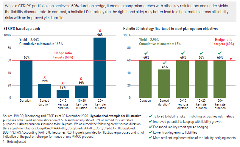 - Ability to maintain capital efficiency in line (or better than) STRIPS through the use of duration overlays paired with a more robust LDI portfolio.