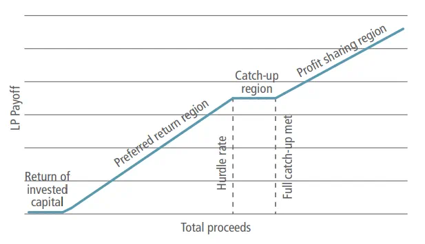 After the investor receives their return of called capital and the preferred return, the manager (GP) then “catches up” to receive a portion of the profits splitting subsequent profits in accordance with the pre-specified carried interest structure.