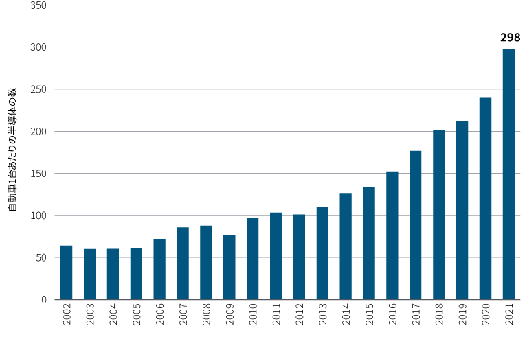 しかしながら、新型コロナウイルスが発生する前から、半導体産業の構造は脆くなっていました。新車(電気自動車を含む)、新世代(5G)の携帯電話、その他のネットに接続されている各種電子機器が急激に導入されたことから大規模な需要の波が発生しましたが、多くの業界リーダーやアナリストはこれら需要を過小評価していました。図表2では、新車に搭載される半導体の平均数が大幅に増加していることを示しています。パンデミックの問題はさておき、需要は引き続き健全なペースで加速すると見られますが、半導体の追加生産体制は緩慢なペースでの増加になると予想しています。世界最大の半導体生産工場も、市場が逼迫した状態が常態化するとの見方をしています。グリーン電力、仮想空間、自動化など新たなアプリケーション向けの需要が増加しているためです。PIMCOでは、今後数年に起こると予想される変化を市場が適切に織り込んでいるとは考えておらず、半導体のサプライチェーン全体が差別化されたリターンをもたらすとみています。
