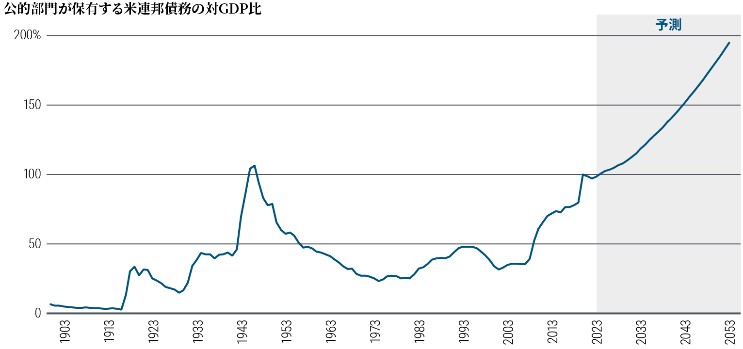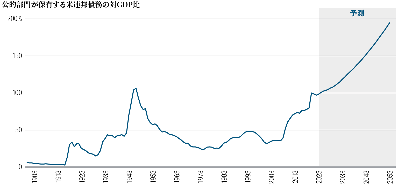 政策手段に目を向けると、現在の天文学的な対GDP比での債務水準(図表2を参照)を踏まえると、向こう5年の財政政策は、政治的にあるいは金融市場によって歯止めがかけられ、将来の景気後退時に財政出動で緩和する余地も限られるだろうとPIMCOではみています。