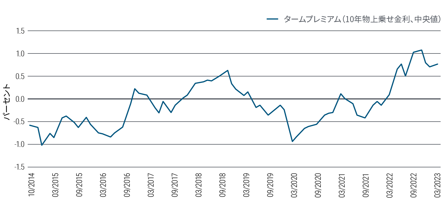 米国の政府債務残高の対GDP比が100%を超える水準に上昇し、インフレ・リスクプレミアムが再燃する可能性がある中、米国債のタームプレミアムは上昇する可能性が高く、利回り曲線をスティープ化させる長期的な要因になる可能性があります(図表3を参照)。現在、利回り曲線は長短が逆転し逆イールドになっていますが、インフレの不確実性が高まっていることを踏まえ、投資家はいずれ中長期債により高い利回りを要求することになるだろうと予想しています。そうなれば、債券の魅力がさらに高まります。