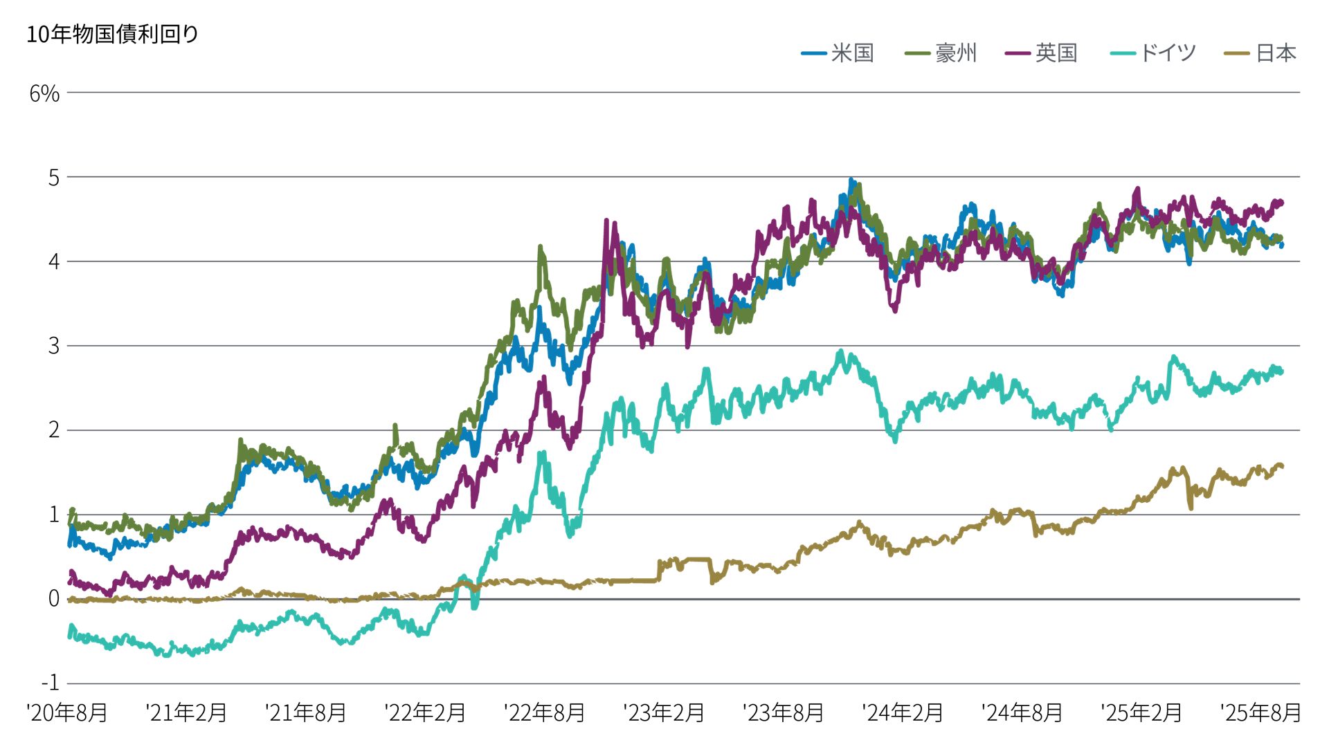 世界的に金融緩和は継続される見通しです。イングランド銀行とオーストラリア準備銀行はディスインフレの再来に伴い、より積極的な利下げを実施する可能性があります。一方、欧州中央銀行(ECB)とカナダ銀行は、政策金利が中立水準に近く、小幅な調整にとどまるでしょう。日銀は引き続き例外です。政策金利は中立水準を下回っており、利上げが予想されています。米国の関税の打撃が予想以上で、財政緩和による相殺が不十分だと判明した場合、各中央銀行には現在、市場に織り込まれている以上に金利を引き下げる余地があります。