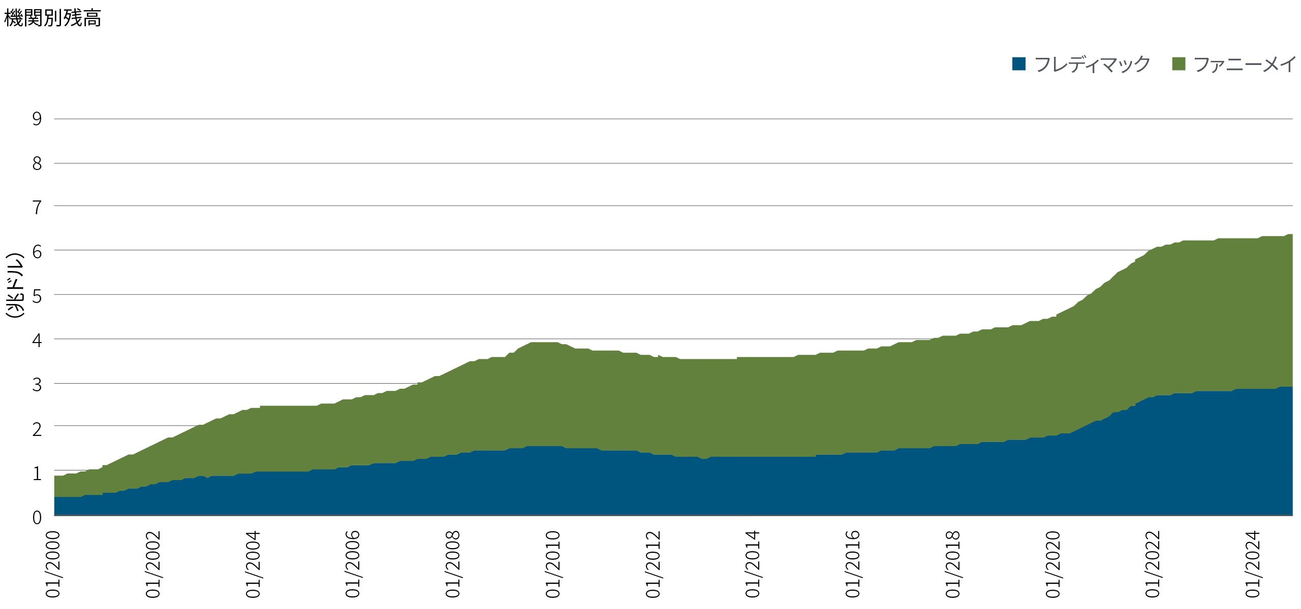 政策当局の目的が、単にモーゲージ債のセカンダリー市場に政府支援企業が流動性を提供し、ひいては全米の借り手に30年固定金利住宅ローンを提供し続けることであるならば、公的管理下の政府支援企業はそのように機能してきましたし、今後もそうあり続けるでしょう。実際、公的管理下で政府系MBS市場はますます拡大し、厚みを増しています(図表1を参照)。