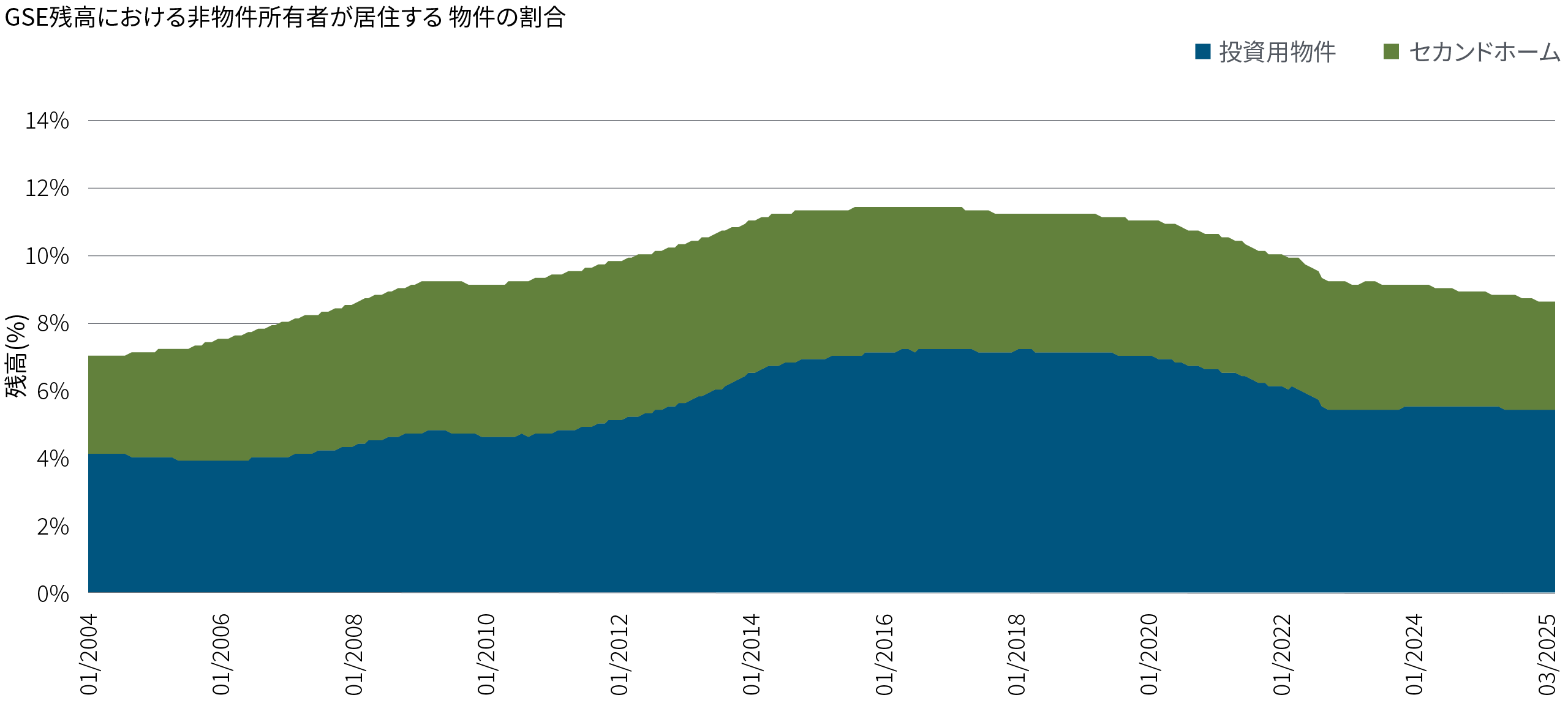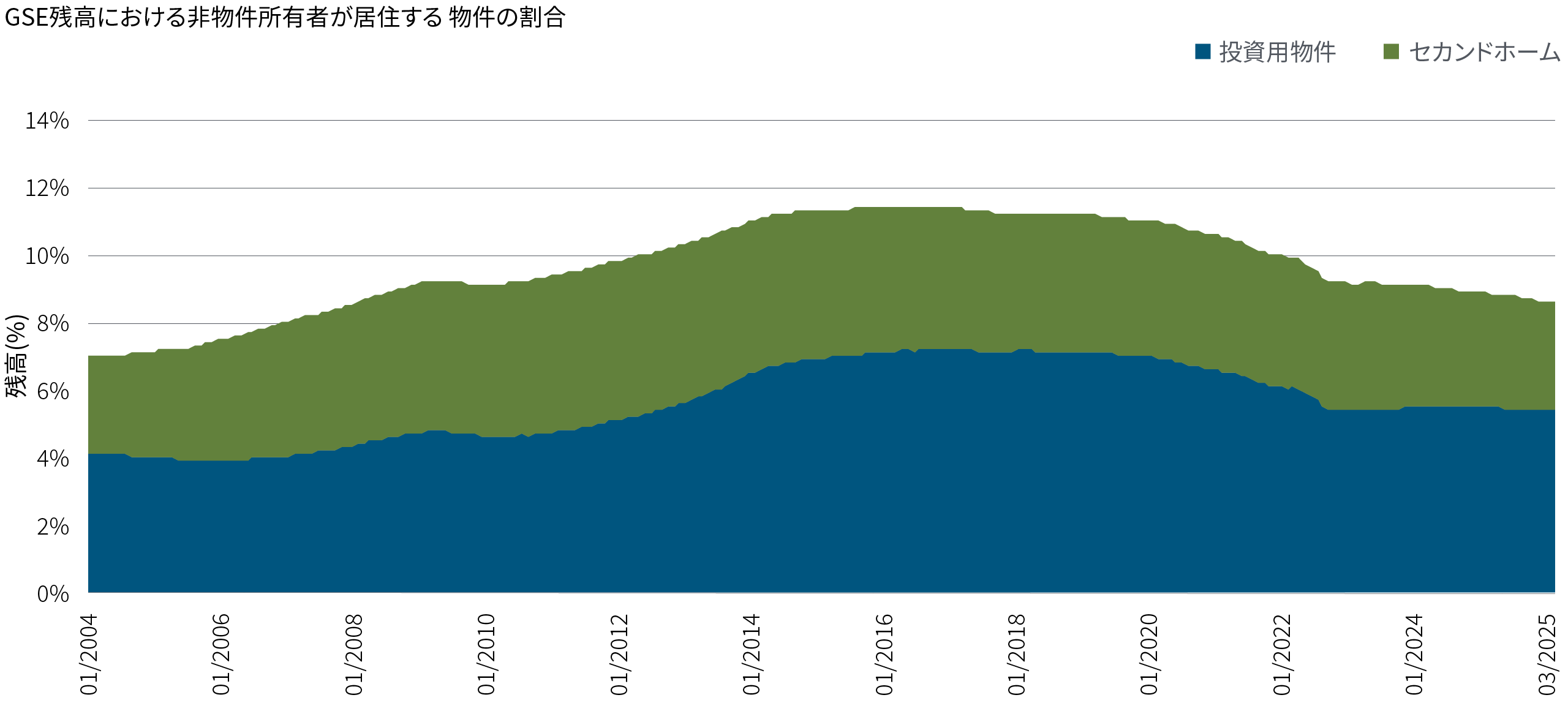 こうした方針に沿って、2021年1月に当時のFHFAマーク・カラブリア長官がGSEの買い入れ要件を満たすセカンドハウスや投資用不動産関連の住宅ローンの数量を制限しました。PIMCOもこの変更は正しい方向への第一歩であると考えましたが、こうした改革は次期バイデン政権によって覆されました6。
