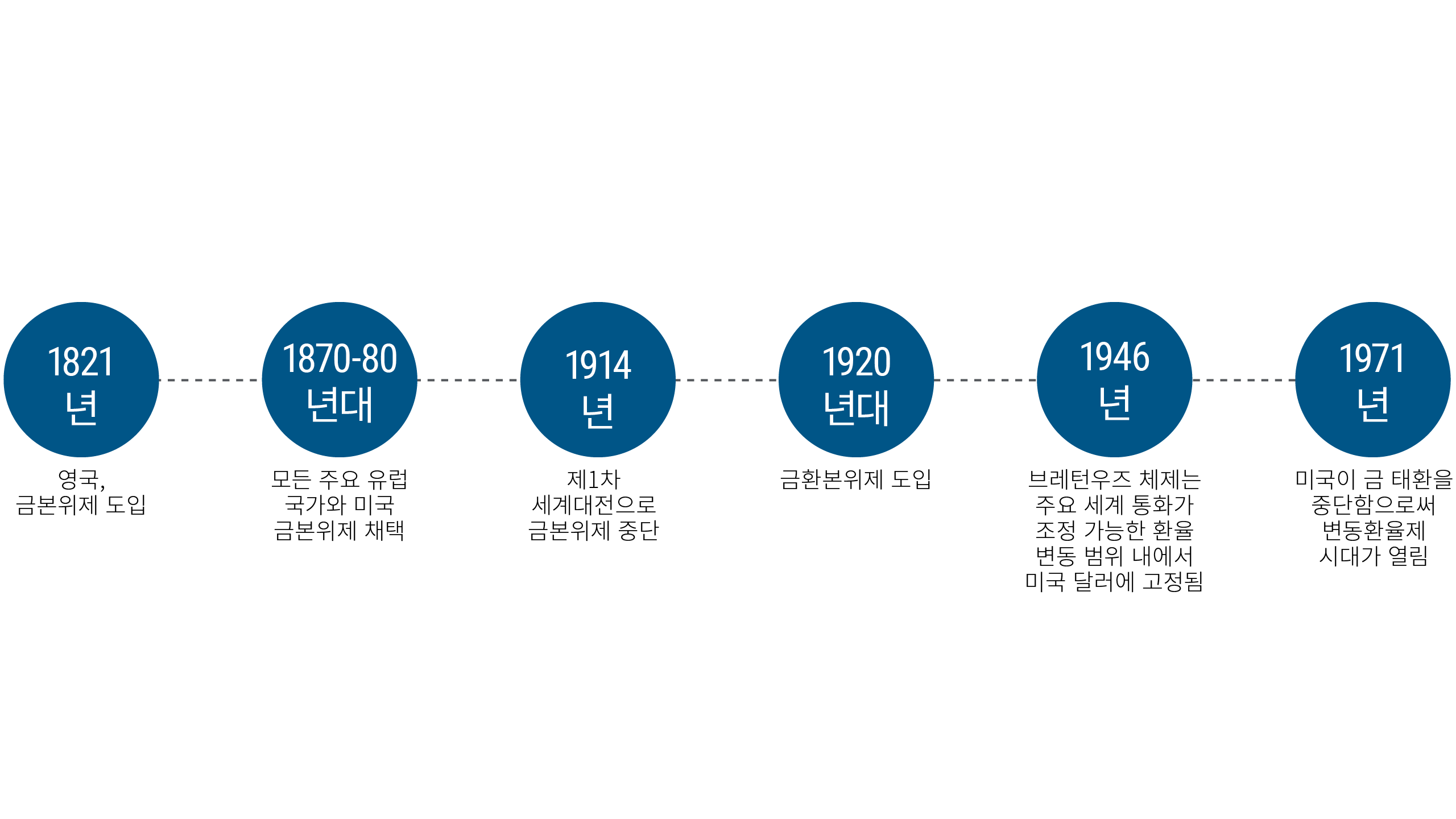 통화 거래가 항상 지금처럼 활발했던 것은 아닙니다. 환율이 유연하지 않았거나, 오늘날 대부분의 주요 통화처럼 "자유롭게 변동"하지 않았기 때문입니다. 19세기에는 각국 정부가 자국 통화를 금 보유량으로 뒷받침하면서, 통화 가치를 일정량의 금으로 고정했습니다. 이러한 금 고정제는 통화 가치에 안정성을 높이고, 사람들에게 통화에 대한 신뢰를 제공했습니다. 영국은 1821년 이 "금본위제"를 도입했으며, 20세기 초에는 세계 무역의 주요 국가 대부분이 이를 채택했습니다.