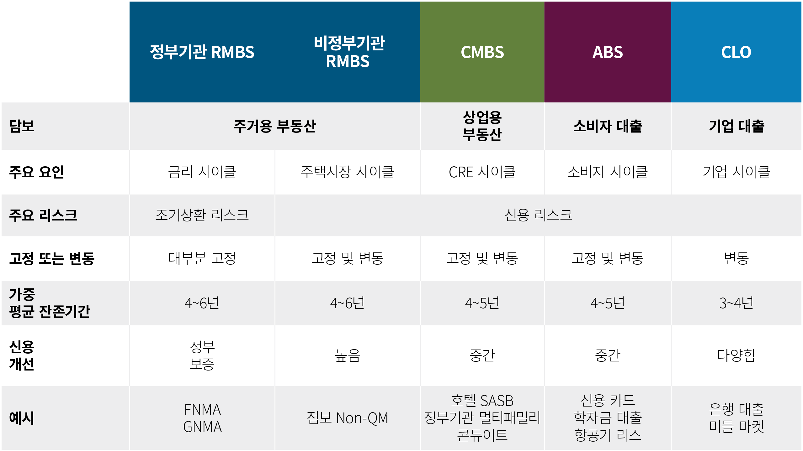 - 헤지펀드 및 기타 대체자산 운용사는 증권화 상품의 하위 트랜치에 투자하여, 해당 채권의 비교적 높은 수익률을 활용해 수익률 목표를 달성합니다.