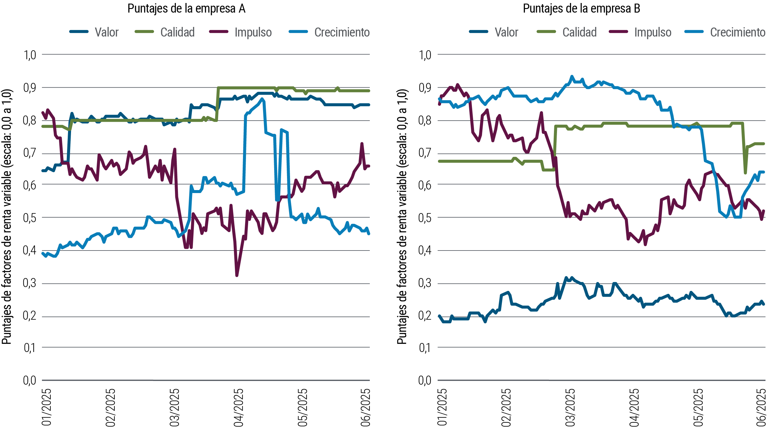 - Combinamos las calificaciones individuales de cada factor en un puntaje consolidado para cada acción, lo que permite una mayor transparencia.