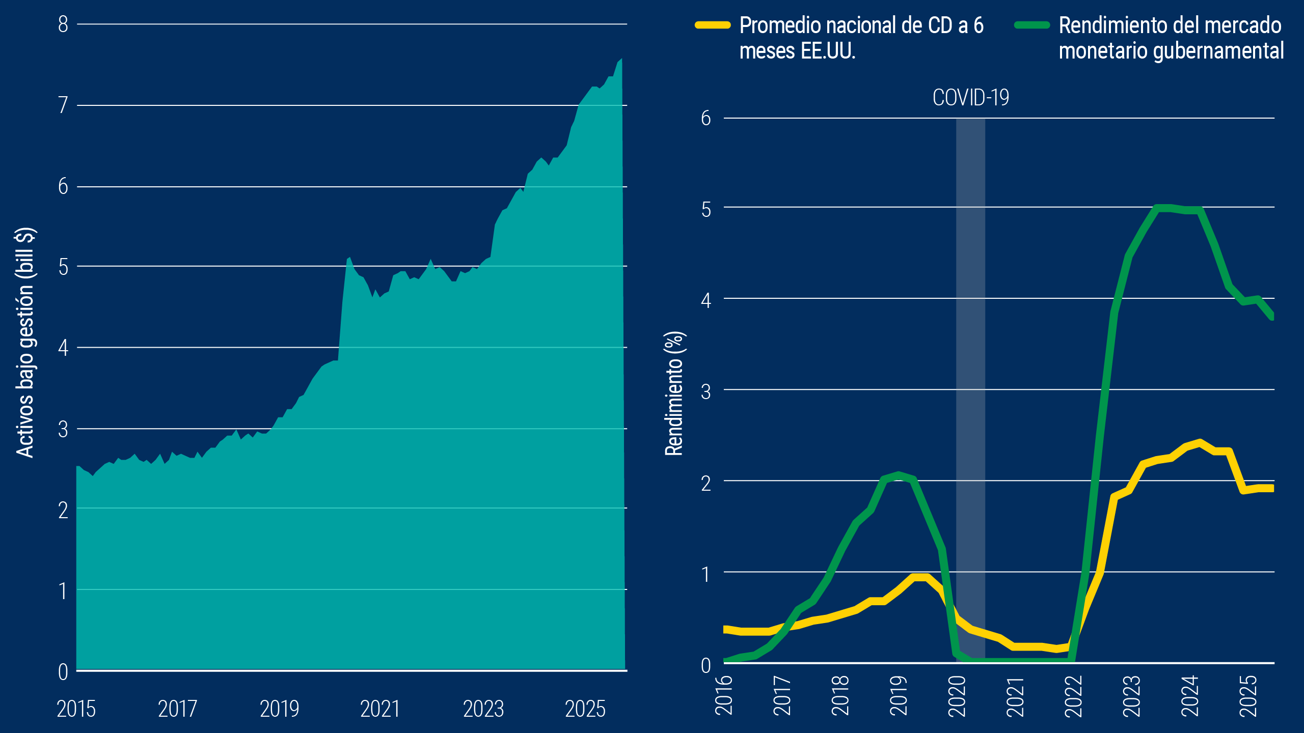 Los retornos inusualmente altos atrajeron a los inversionistas hacia el efectivo durante el periodo que siguió a la pandemia de inflación elevada y alzas de tasas por parte de la Fed (ver el gráfico 2). Pero la fase actual de recortes de tasas por parte de la Fed conlleva costos de oportunidad y riesgo de reinversión, ya que las posiciones en efectivo se renuevan repetidamente en instrumentos con rendimientos más bajos.
