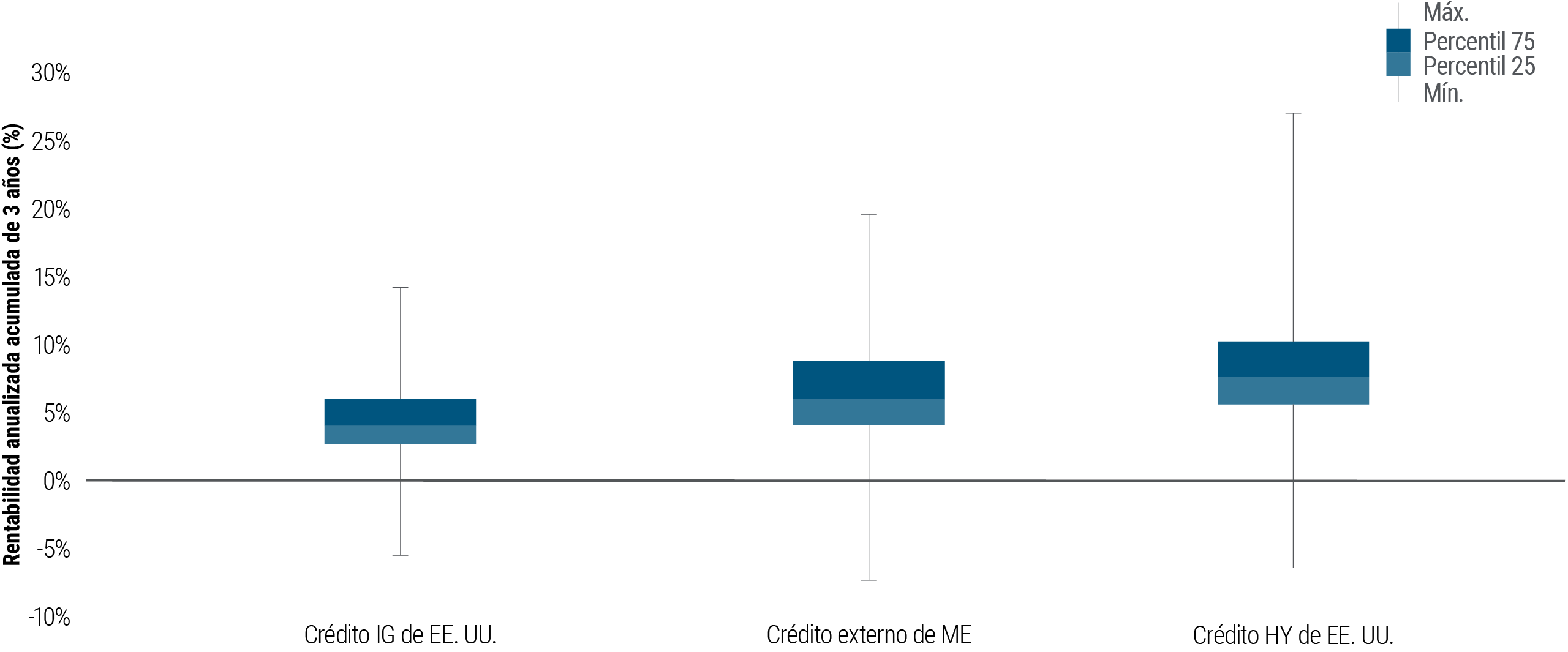 Los mejores países o regiones generalmente no son aquellos que se promocionan como las próximas historias de éxito. Contrariamente a la creencia convencional, los ME a menudo recompensan a los inversionistas que minimizan las pérdidas en lugar de maximizar las ganancias y que evitan posiciones concentradas en países de alto rendimiento. Creemos que la deuda de ME debería emplearse principalmente como una herramienta de diversificación, en lugar de como una fuente para buscar rentabilidad alta, priorizando los países de menor riesgo y las estructuras de deuda senior.