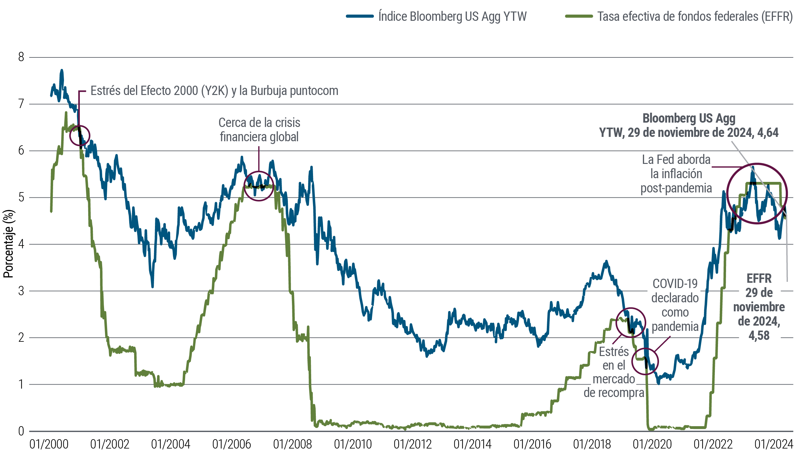 Una asignación a renta fija ofrece rendimientos atractivos, potencial de apreciación de precios y una cobertura líquida contra el riesgo de que las acciones u otros activos más volátiles experimenten una contracción sostenida.