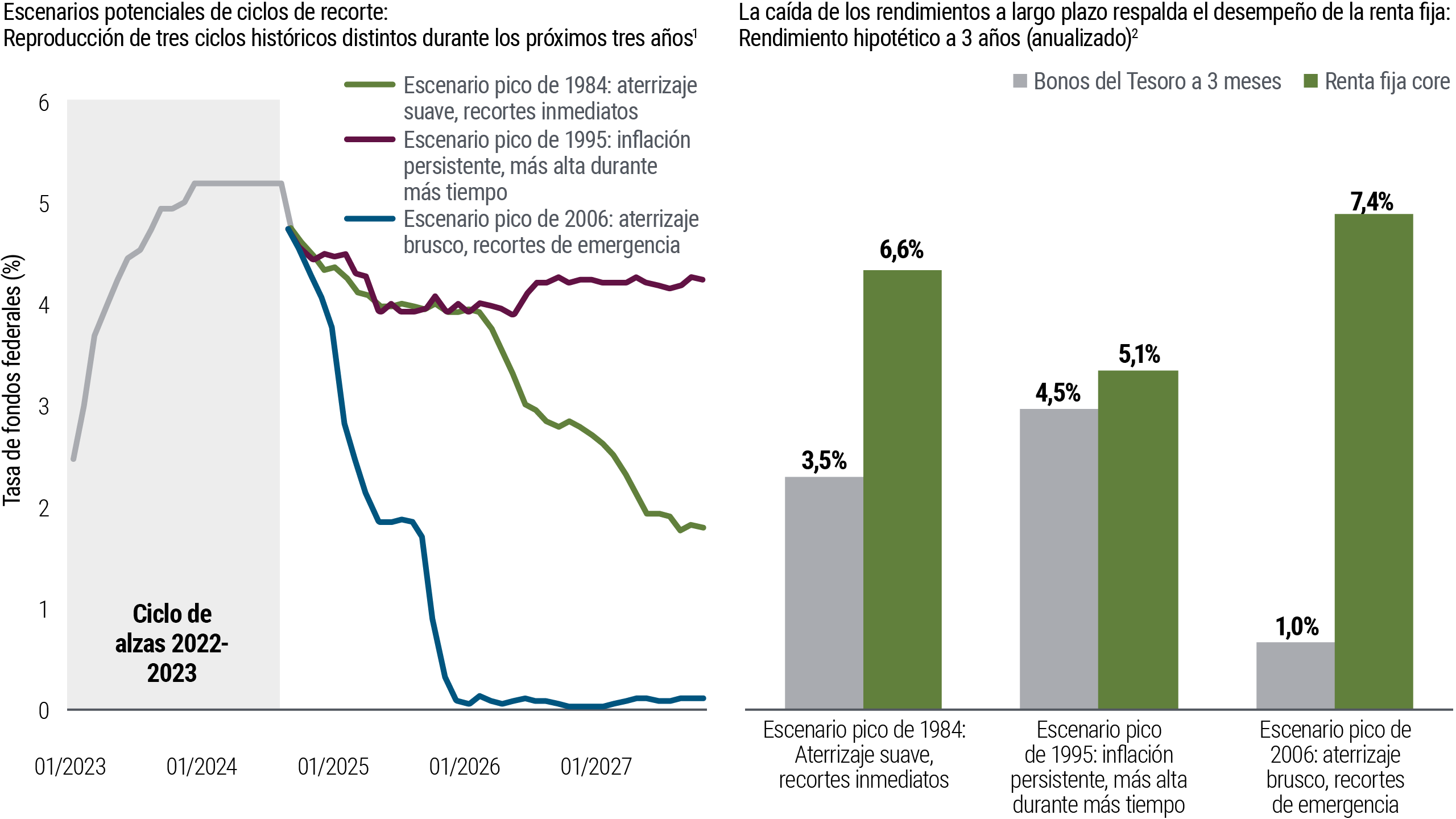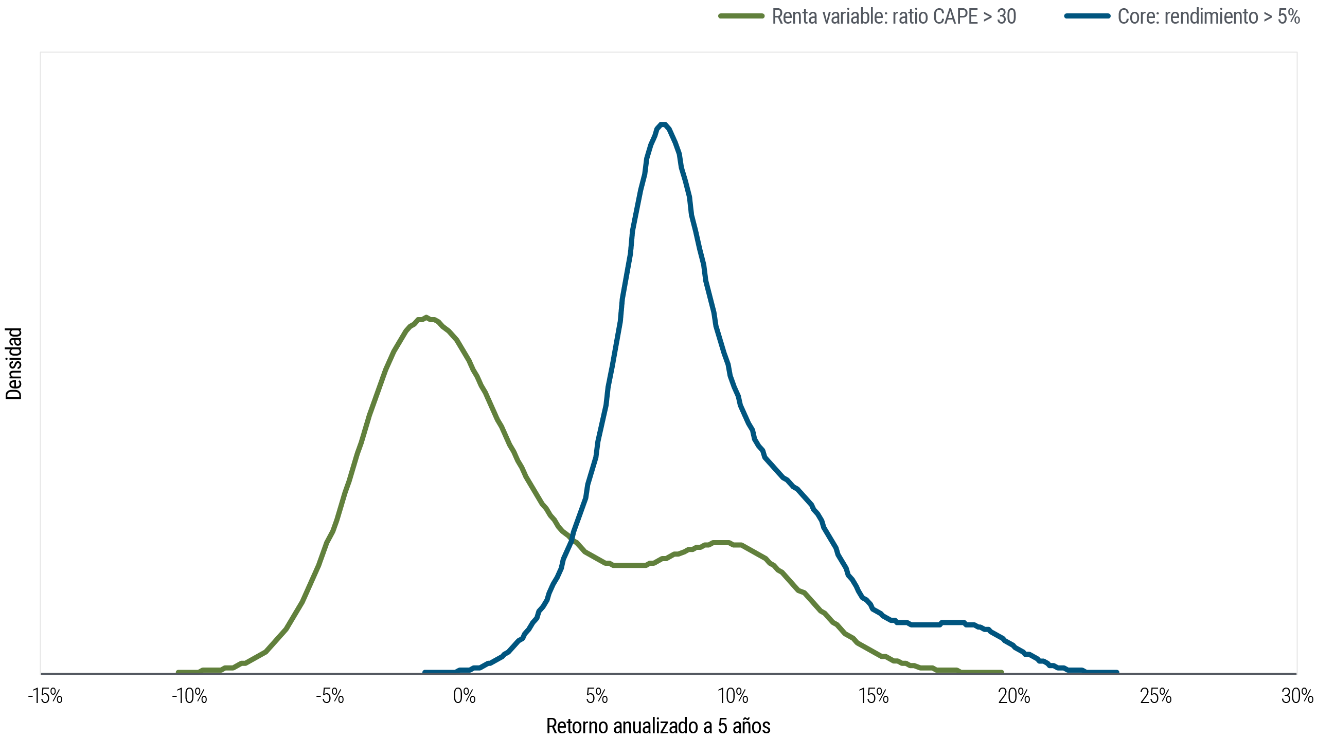 Basándonos en las valoraciones relativas actuales y en las condiciones del mercado, creemos firmemente que la renta fija pública líquida y de alta calidad tiene un enorme valor. Los rendimientos iniciales son atractivos en comparación con otros activos en todo el espectro de riesgo y liquidez, incluido el efectivo, e históricamente, los rendimientos iniciales fueron un fuerte indicador del desempeño de la renta fija a largo plazo.