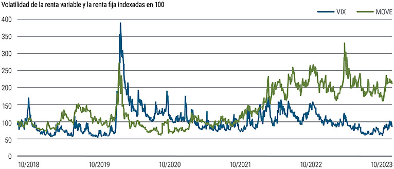 Las perspectivas económicas mundiales, junto con las valoraciones del mercado y los fundamentales de las clases de activos, nos llevan a favorecer la renta fija. En comparación con la renta variable, creemos que la renta fija pocas veces ha resultado tan atractiva como hoy en día. Tras un par de años turbulentos en los que la alta inflación y las subidas de tasas pusieron a prueba las carteras, los mercados de renta fija y renta variable podrían volver a comportarse de forma más convencional en 2024, aunque el crecimiento sea limitado en muchas regiones.