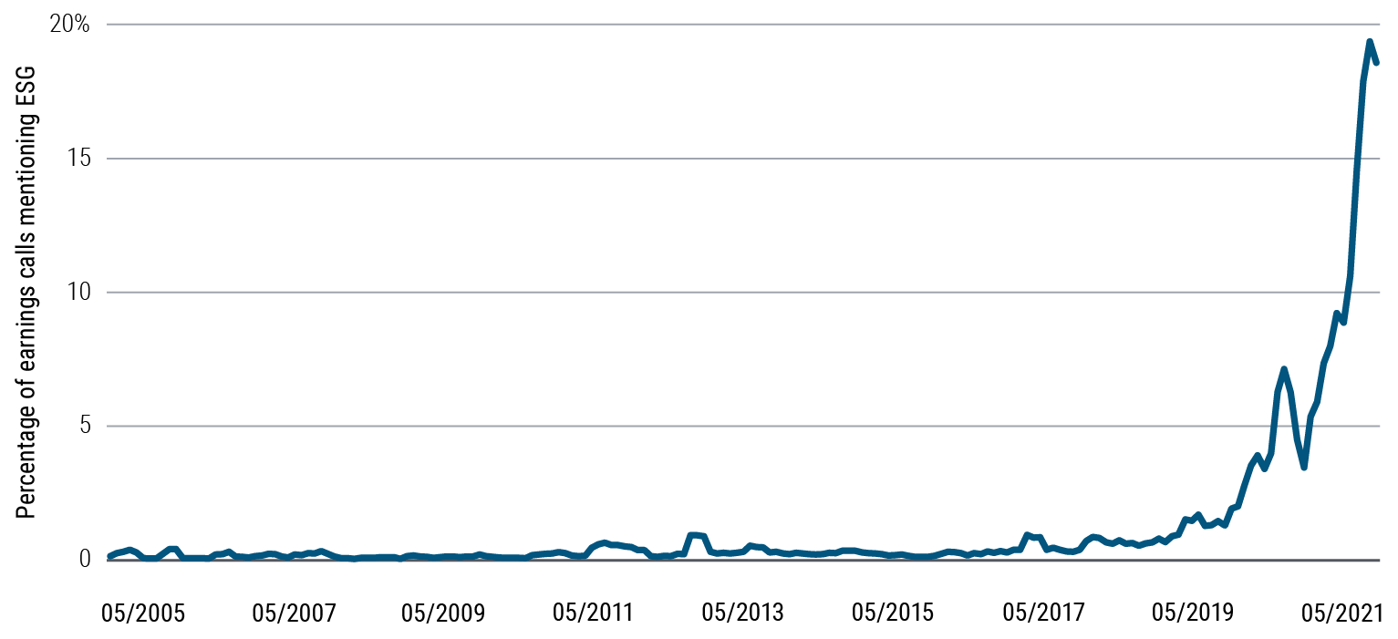 What may be different this time? One trend gaining ground in tandem with the current mid-cycle recovery is ESG investing (environment, social, and governance). Corporate earnings calls, for example, have seen a dramatic increase in mentions of ESG since the onset of the pandemic (see Figure 2). Mapping these ESG influences helps inform asset allocation strategy.