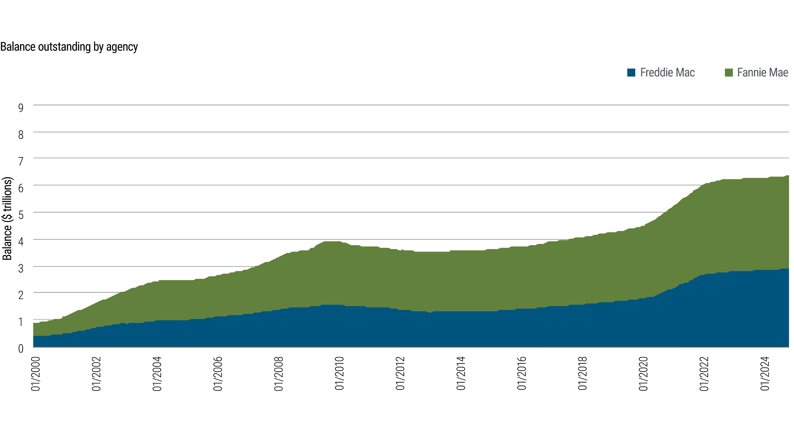 Regardless of what Washington decides, our focus at PIMCO, as one of the largest participants in the $6.6 trillion GSE, or agency mortgage-backed security (agency MBS), market,1 is to ensure on behalf of our clients that the deep, well-functioning mortgage market continues uninterrupted and, ideally, unaffected.