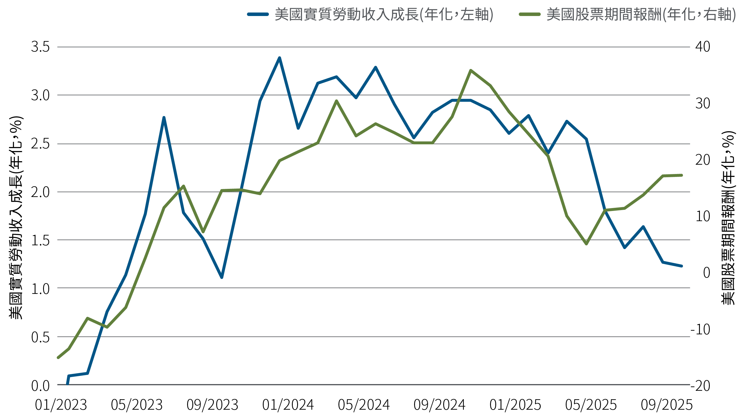 - 為了維持利潤,許多企業加速採用AI人工智慧以控制勞動成本。在美國,AI相關的軟體與研發投資加速,架構、伺服器、晶片及其他零組件等資料中心投資更是翻倍成長。