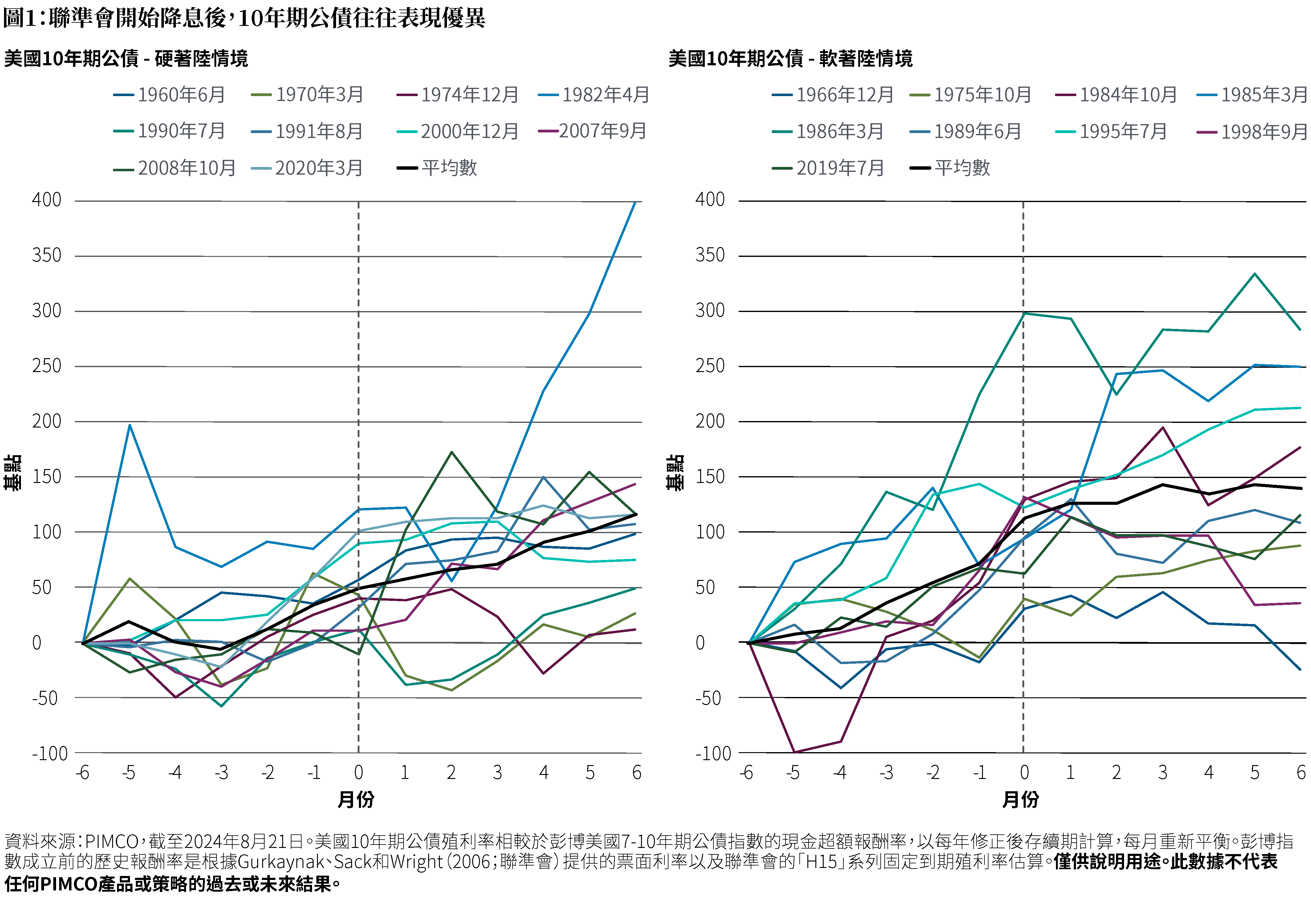 根據歷史經驗,市場表現會根據降息發生在經濟疲弱的硬著陸,或在較溫和的軟著陸期間而有所不同。例如: