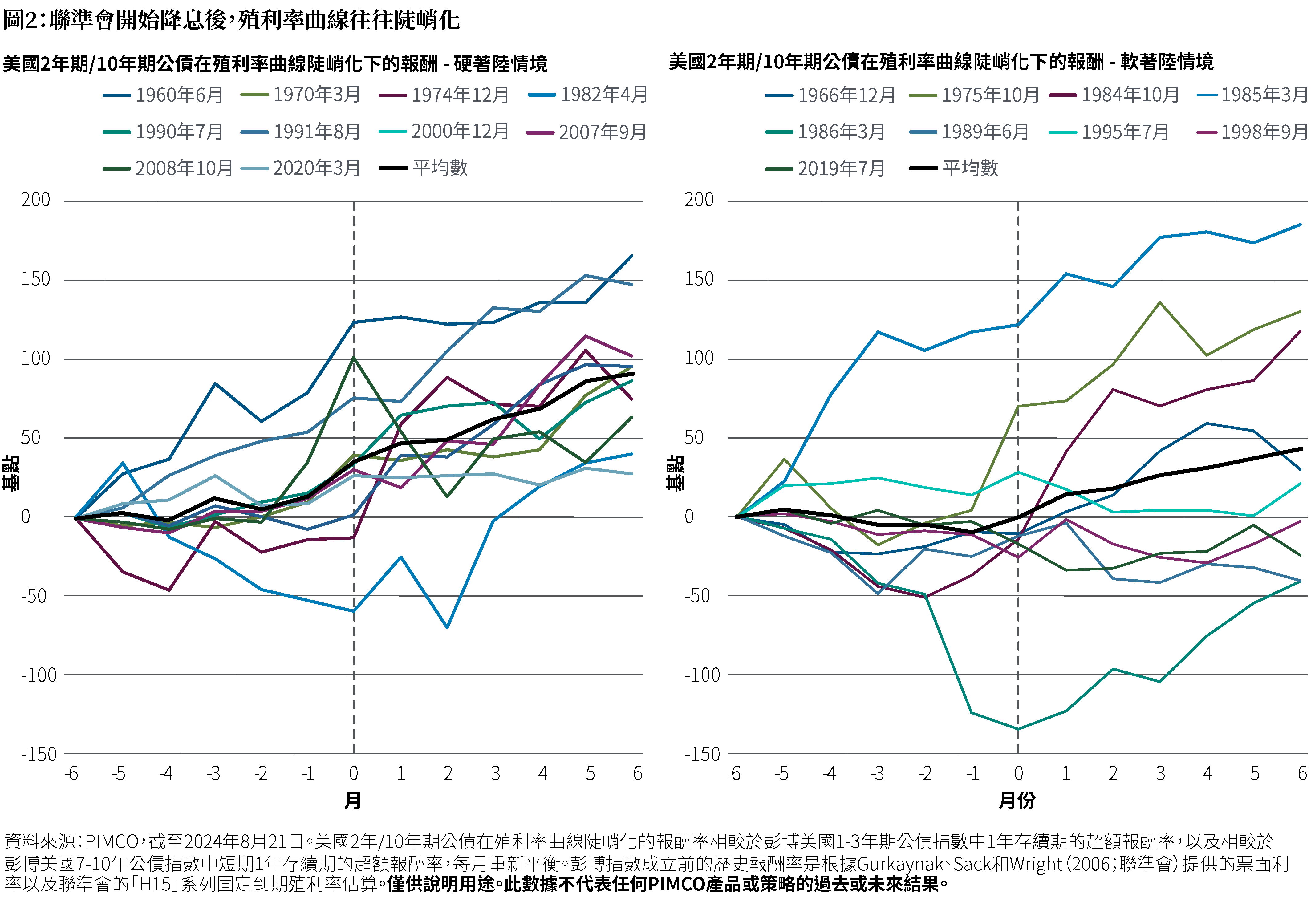 殖利率曲線陡峭化的交易部位表現良好,尤其是在硬著陸情境下。若聯準會透過大幅降低短期利率來對抗經濟疲軟,布局美國殖利率曲線正常化的部位將受益最多。美國殖利率曲線在經歷了史上最久的倒掛後,近期開始再度趨於陡峭(見圖2)。