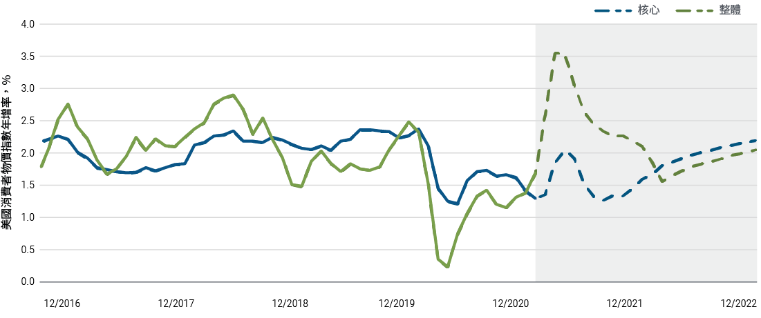 儘管如此,我們仍須注意各種可能推升通膨的潛在風險,例如經濟成長率與就業人口成長速度優於預期;能源價格進一步走升;科技產業面臨來自供應鏈的漲價壓力(例如半導體),進而推升電子產品價格;以及貨幣與財政刺激政策發揮加乘效果,聯手推升通膨預期水準。