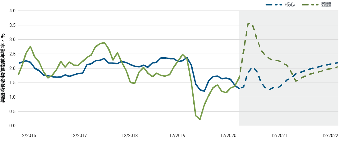 儘管如此,我們仍須注意各種可能推升通膨的潛在風險,例如經濟成長率與就業人口成長速度優於預期;能源價格進一步走升;科技產業面臨來自供應鏈的漲價壓力(例如半導體),進而推升電子產品價格;以及貨幣與財政刺激政策發揮加乘效果,聯手推升通膨預期水準。