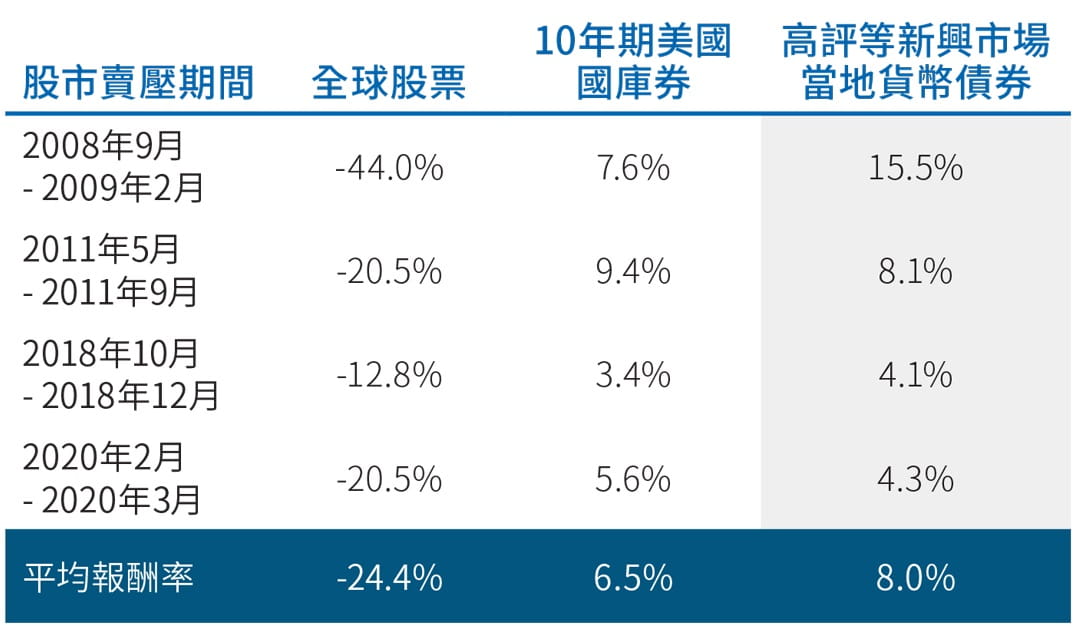 儘管殖利率處於歷史低點,但是我們認為高評等的利率資產(政府公債)將持續發揮可靠的分散配置效果,協助我們抵禦經濟成長的挑戰。對比多數已開發國家,美國國庫券的上檔空間較為顯著,且可能仍是投資人首選的避風港資產,因此我們的多元資產投資策略偏好維持加碼美國國庫券。此外,我們亦青睞特定的新興市場政府公債,其中包括殖利率較具吸引力、且在風險趨避環境下表現良好的秘魯與中國政府公債,以此作為分散配置的投資標的之一(圖五)。